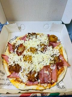Carne de res, tocineta pollo, carne desmechada, queso, jamón, cebolla, tomate, lechuga, ripio, salsas y queso gratinado.