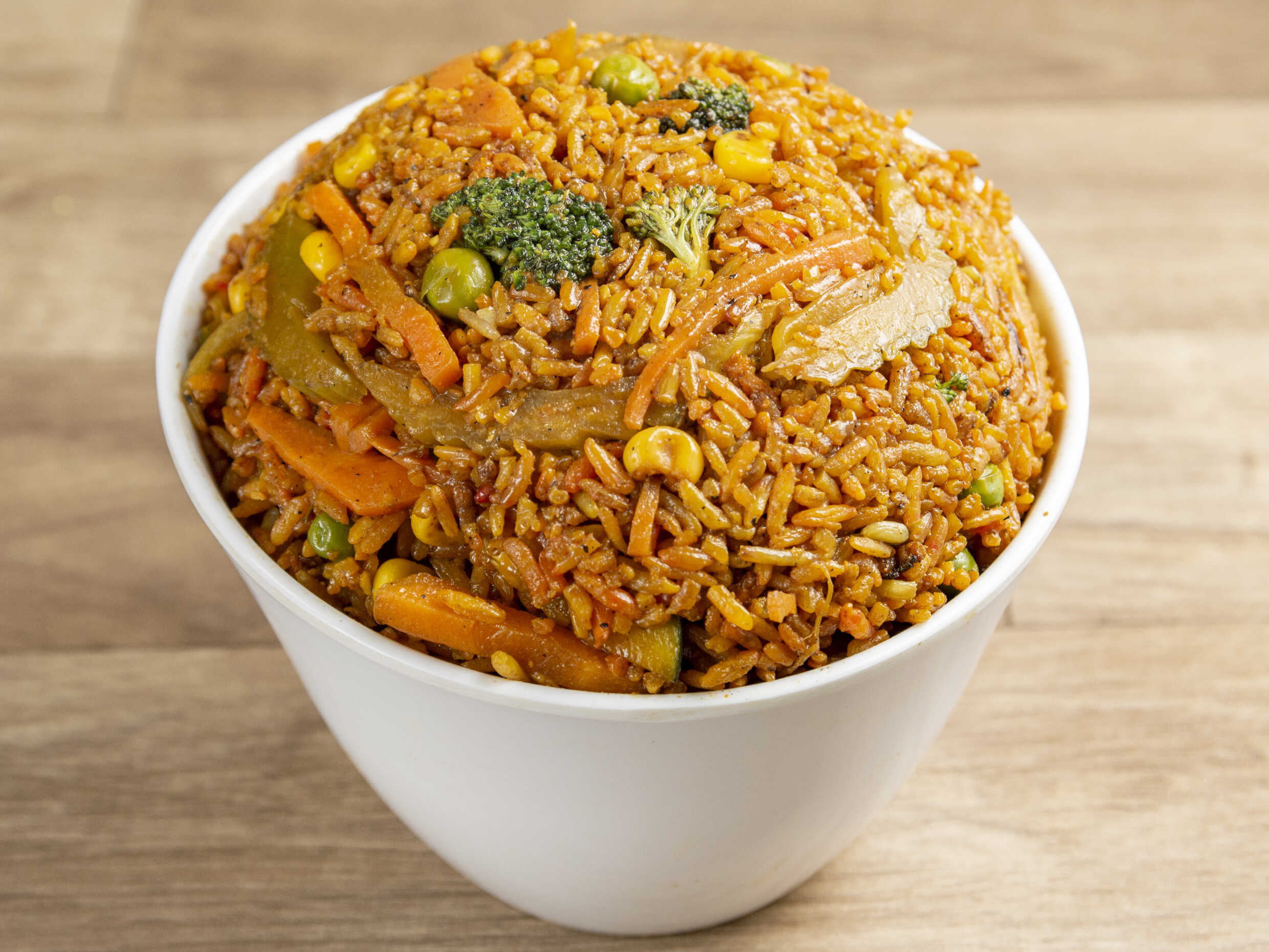 Delicioso Arroz con Verduras, Piña, Calabacin, Camaron, Pollo, Cerdo, Costilla, Champiñon, Raices, Ajonjoli y Pasta de Ajo.