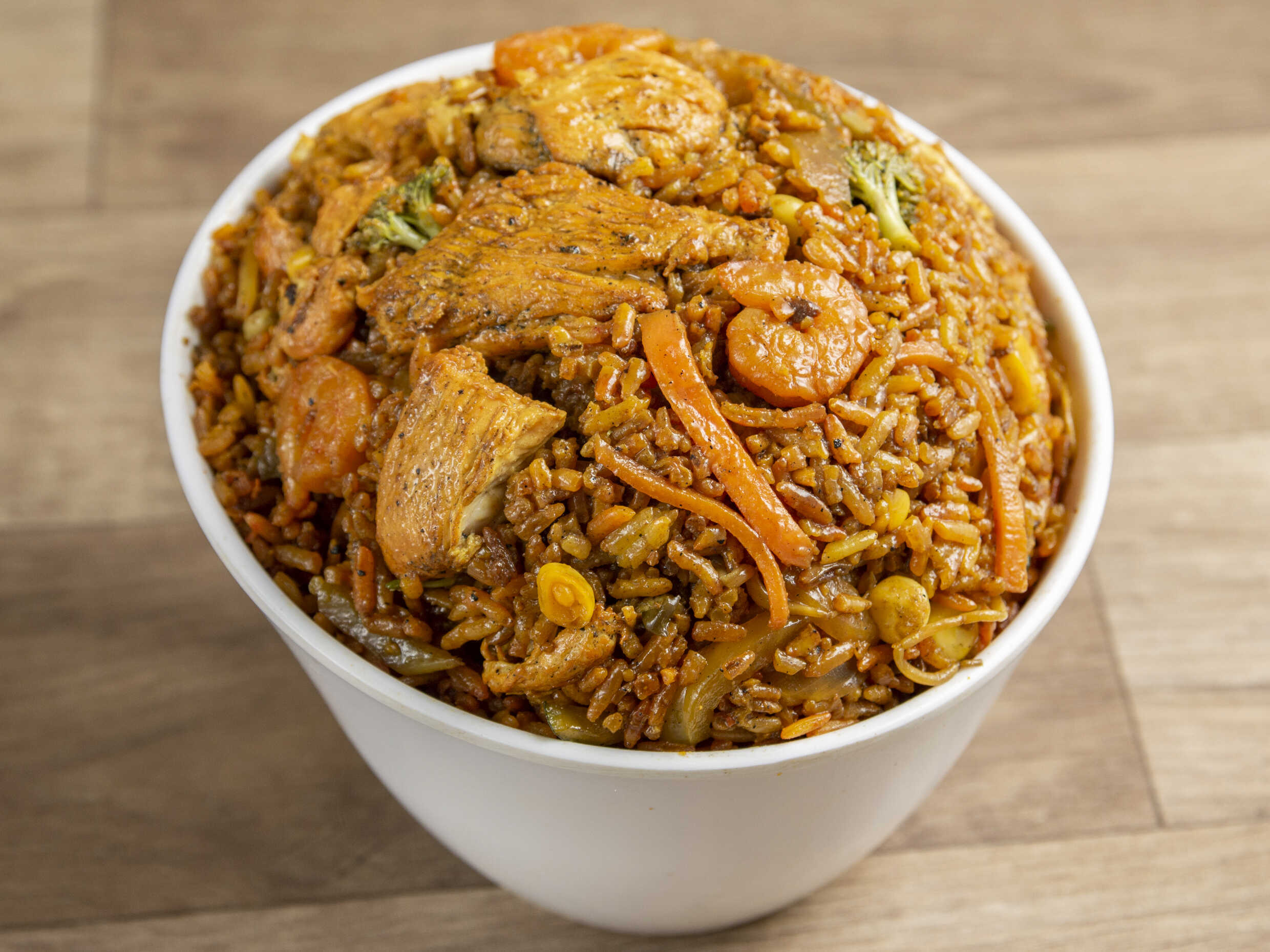 Pollo, Camarón, Verduras. Acompañado de Arroz.