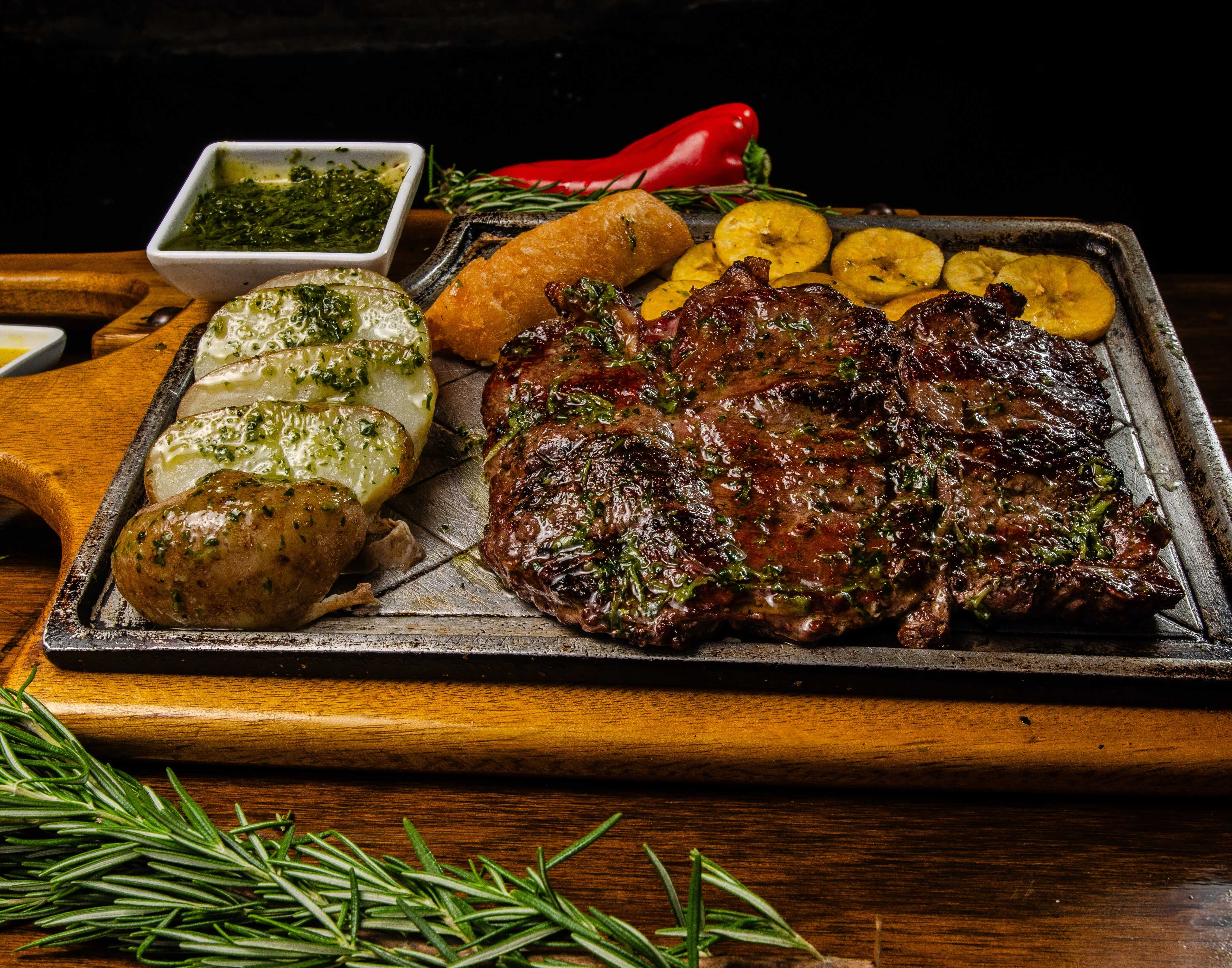 250 Grs de Corte Especial lomo de Caracho a la parrilla acompañado con Papa cocida, moneditas de platano y Yuca cocida.