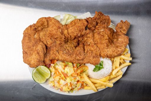 Tilapia Frita King Kong acompañada de arroz, ensalada, Principio y sopa a elección, con limonada de la casa