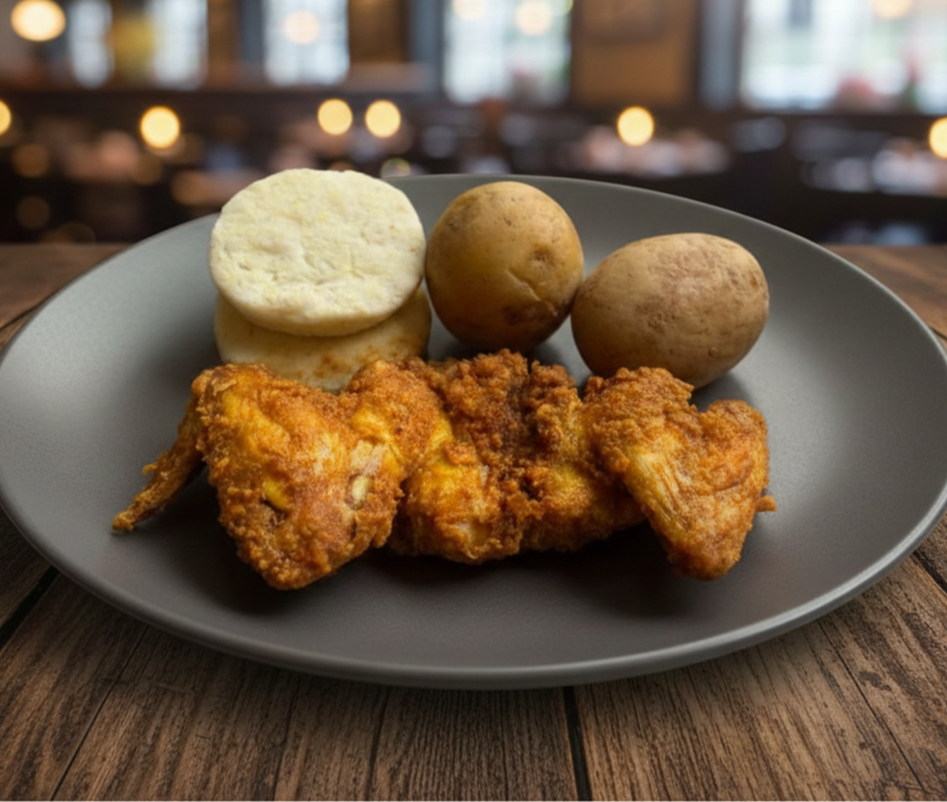 1\2 pollo con papá y arepa