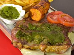Poción de 200 gr acompañado de papá a la francesa, ensalada (tomate y Batavia)