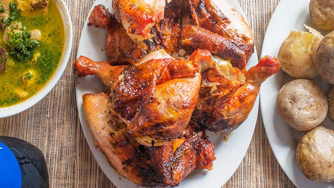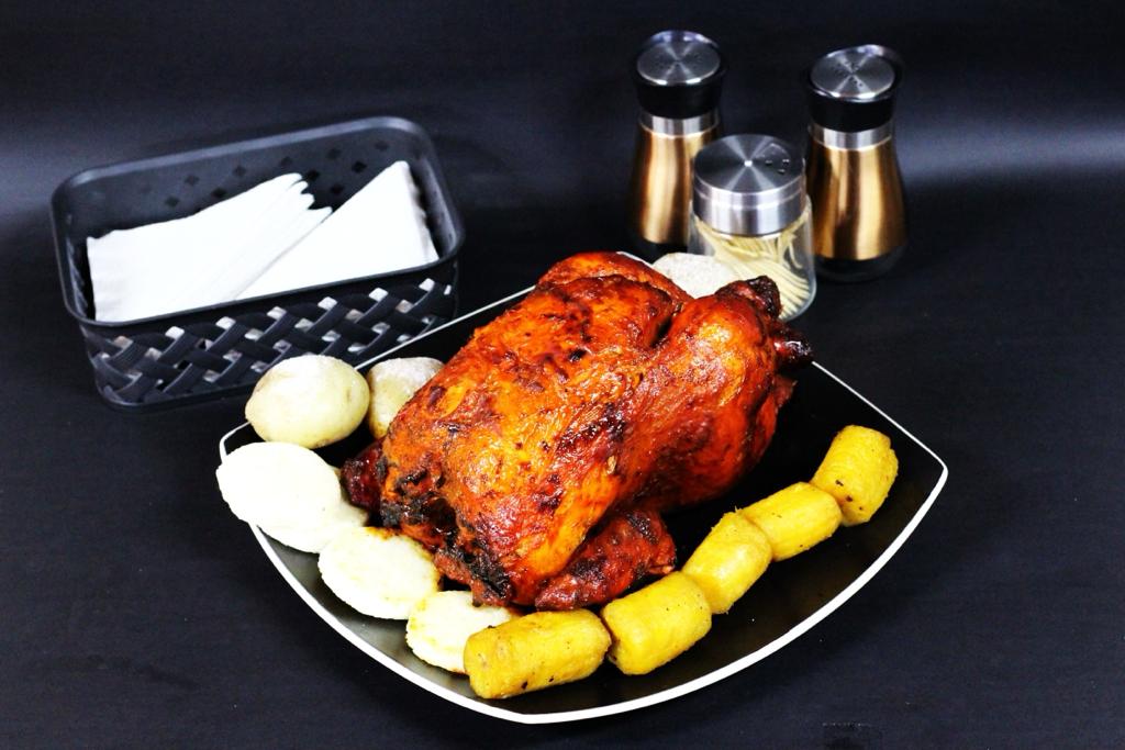 Pollo Entero Asado ( con Papa Arepa y Maduro)