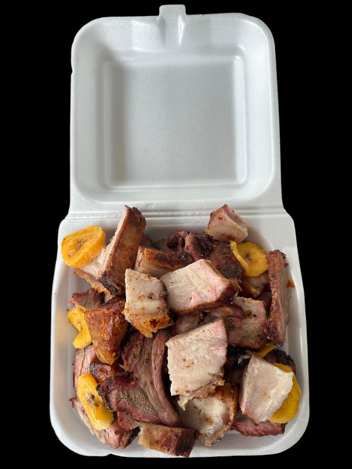 910 g de panceta (chicharrón, costilla y carne pulpa) acompañados por papa cocida