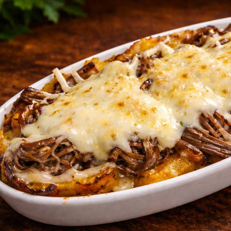 MADURO RELLENO DE CARNE DESMECHADA DE RES CON QUESO