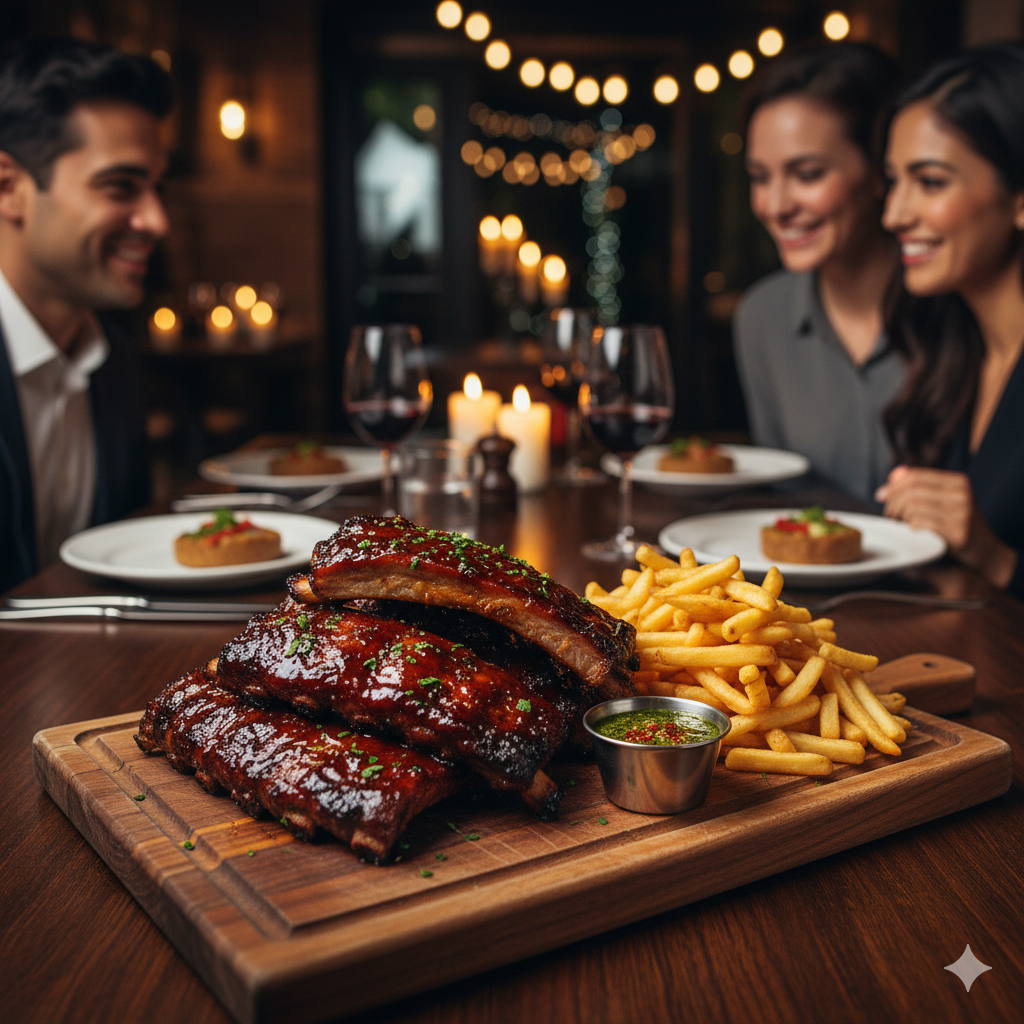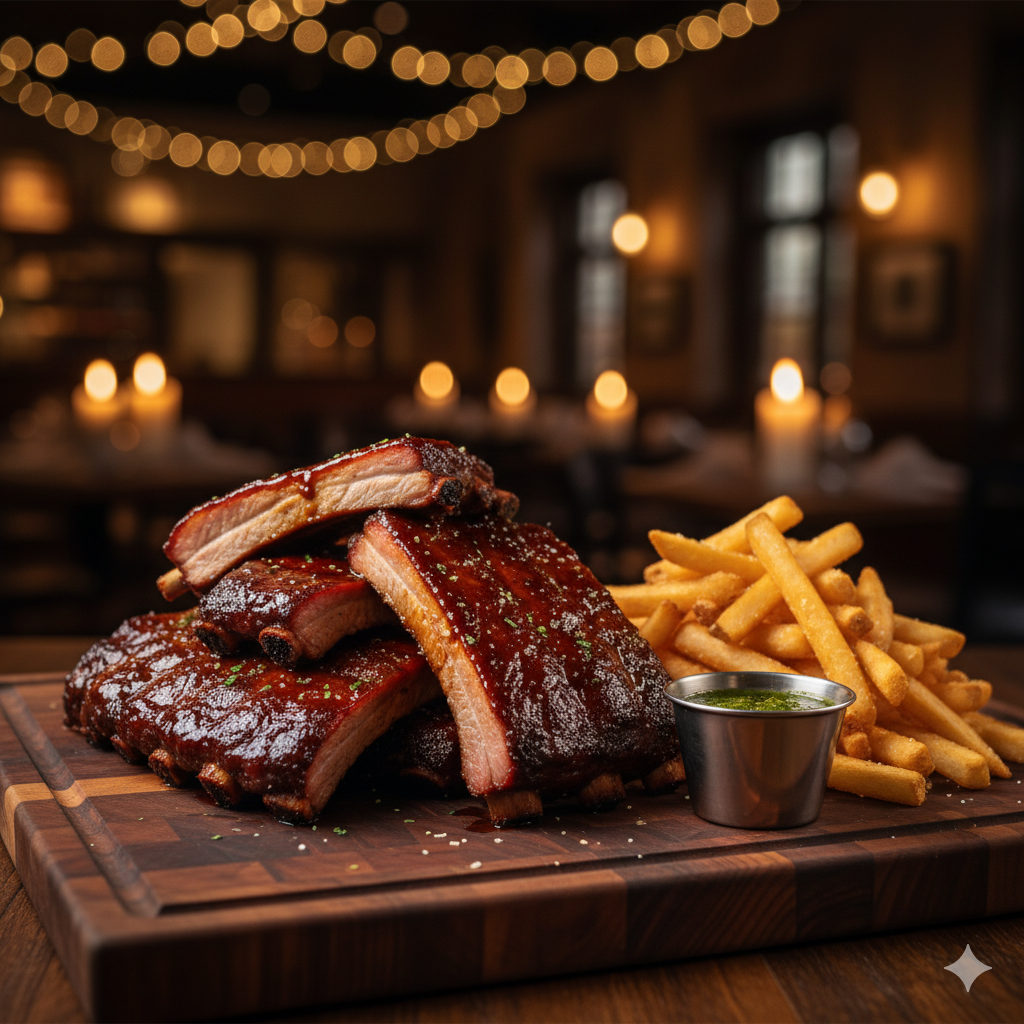 deliciosa costilla bbq para 4 mas papas a la francesa y chimichurri