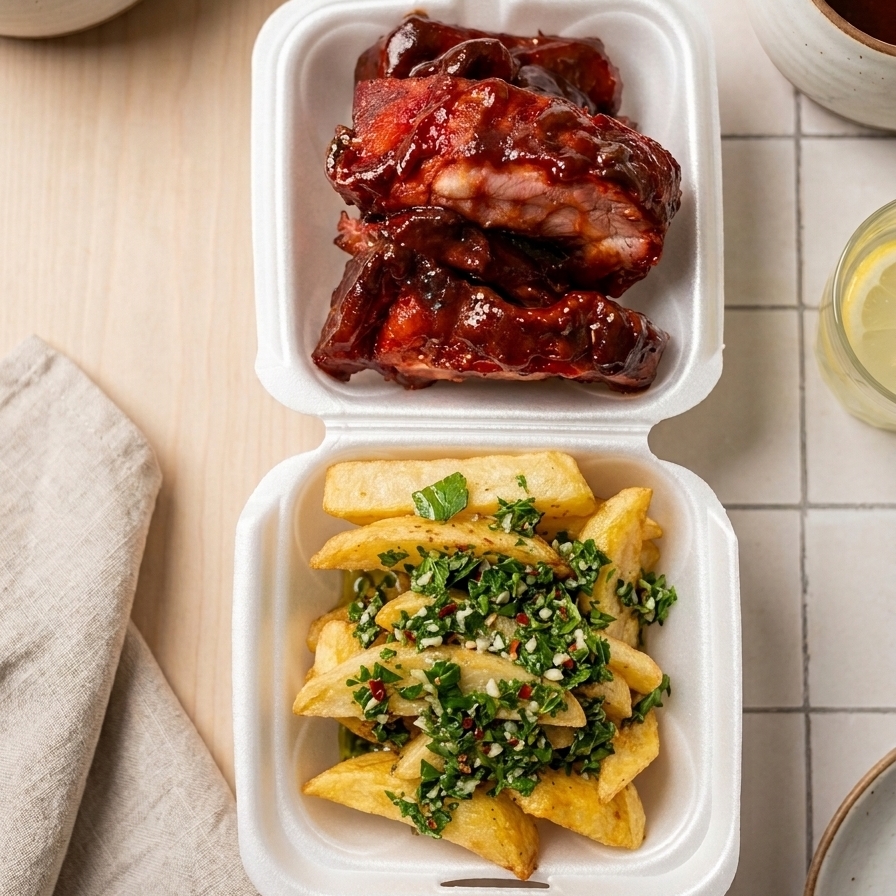 Costilla Bbq + Papas + Chimichurri (2 Personas)