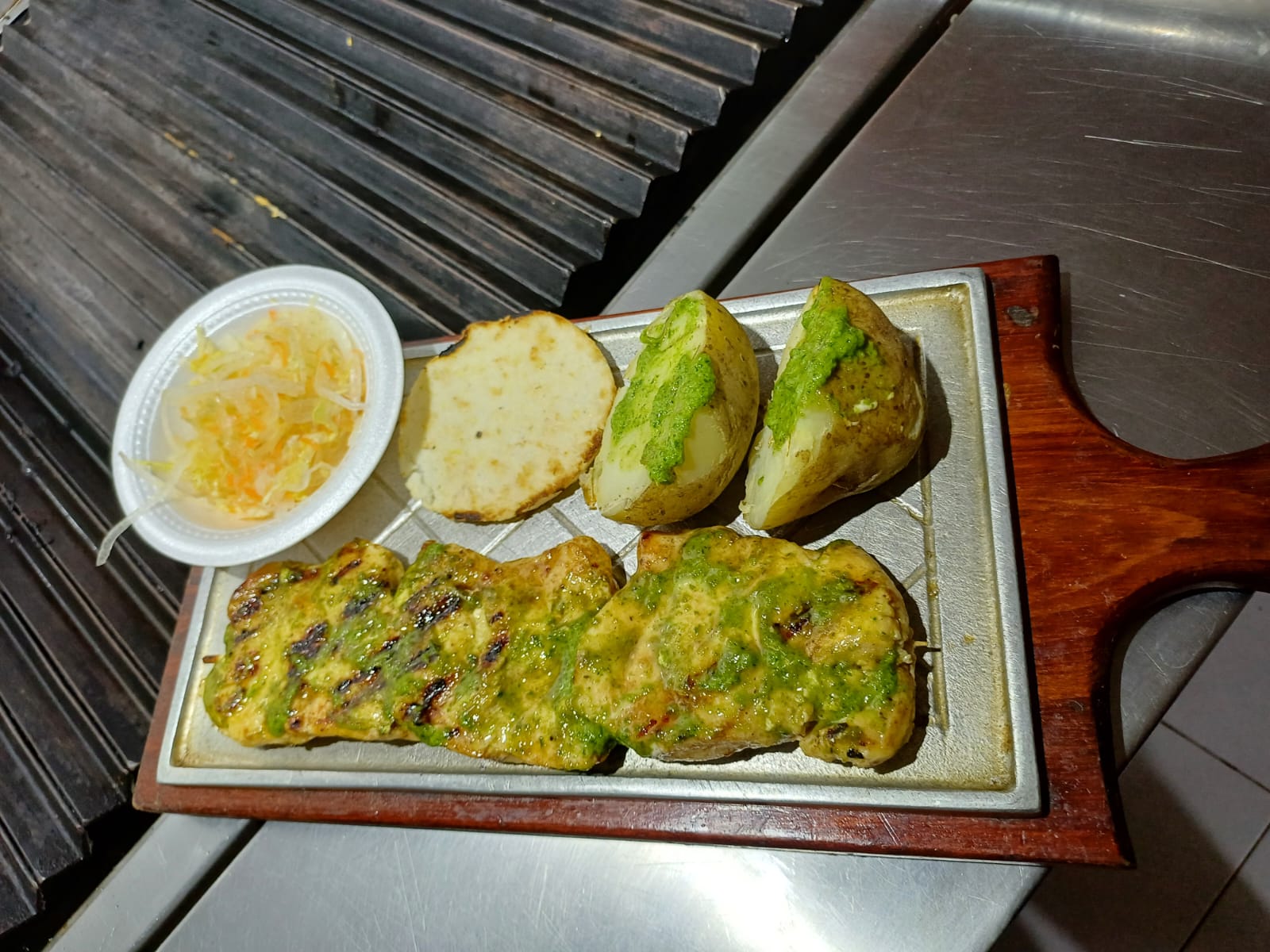 400 g Carne asada de res o cerdo, papas y ensalada de la casa.