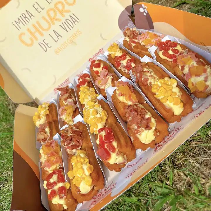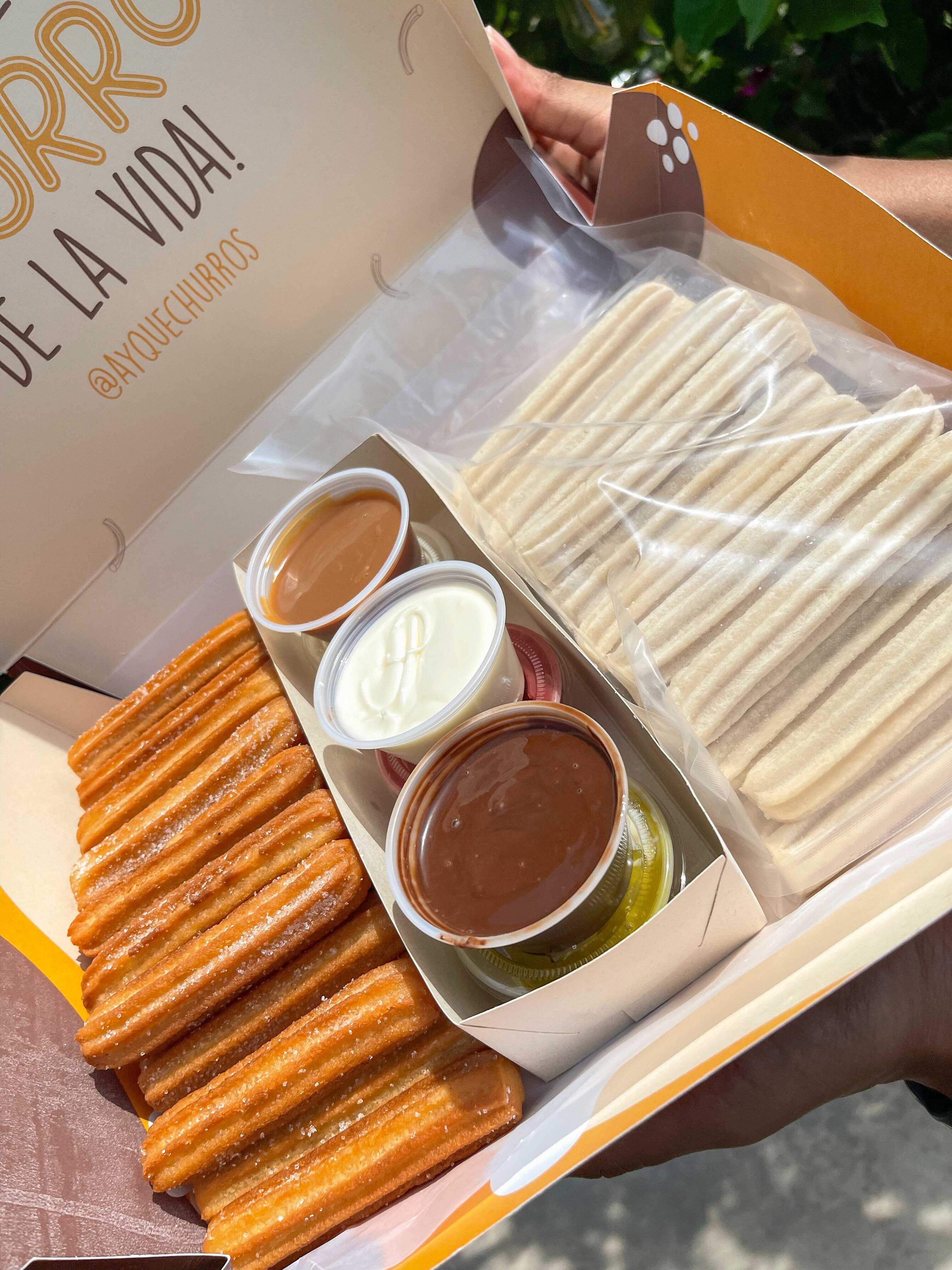 Caja de 6 churros rellenos 3 dulces y 3 salados, el balance perfecto hecho churro.