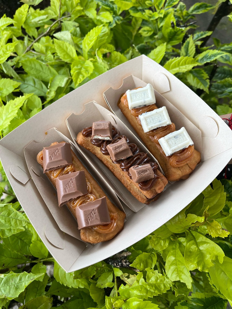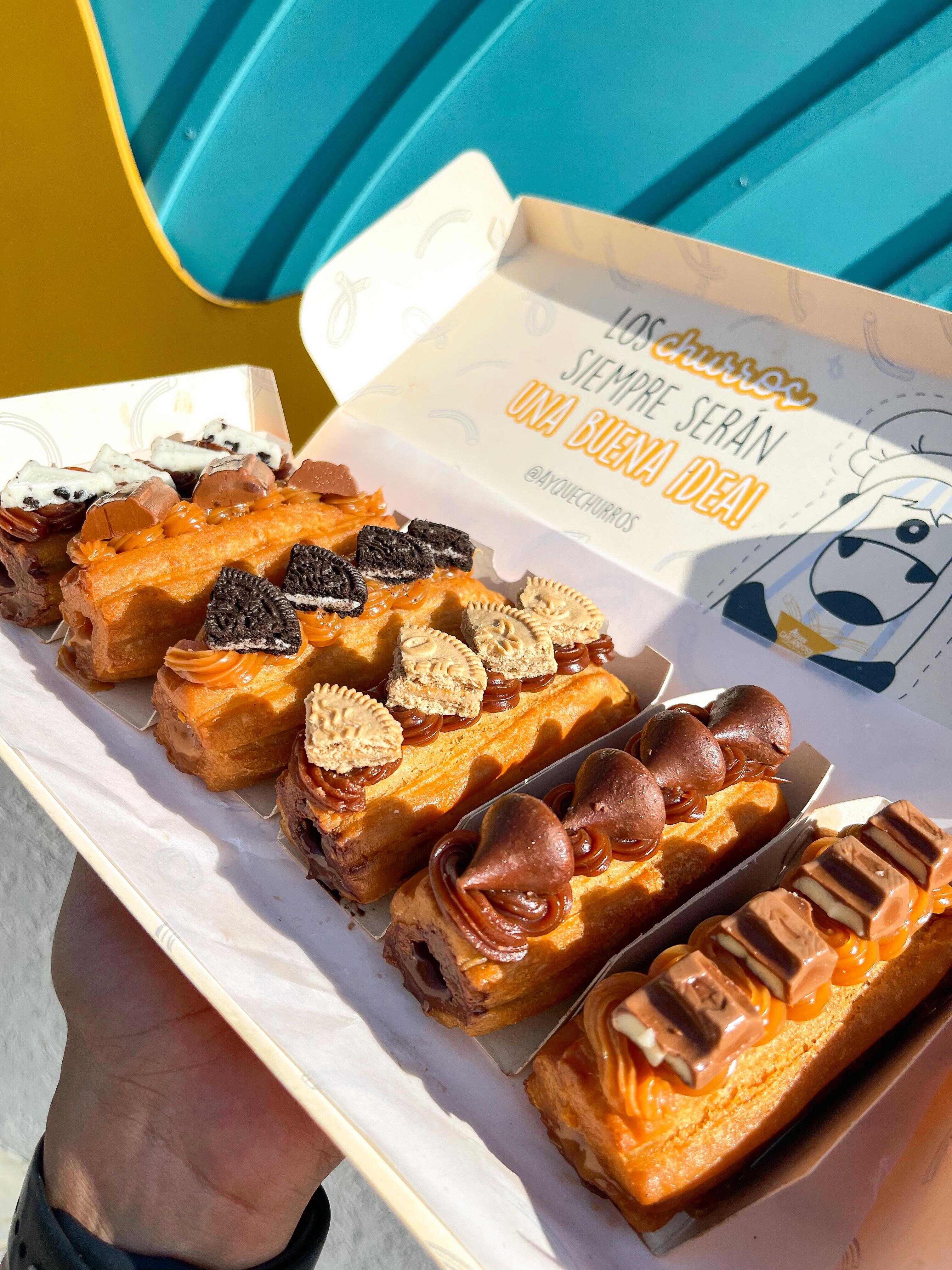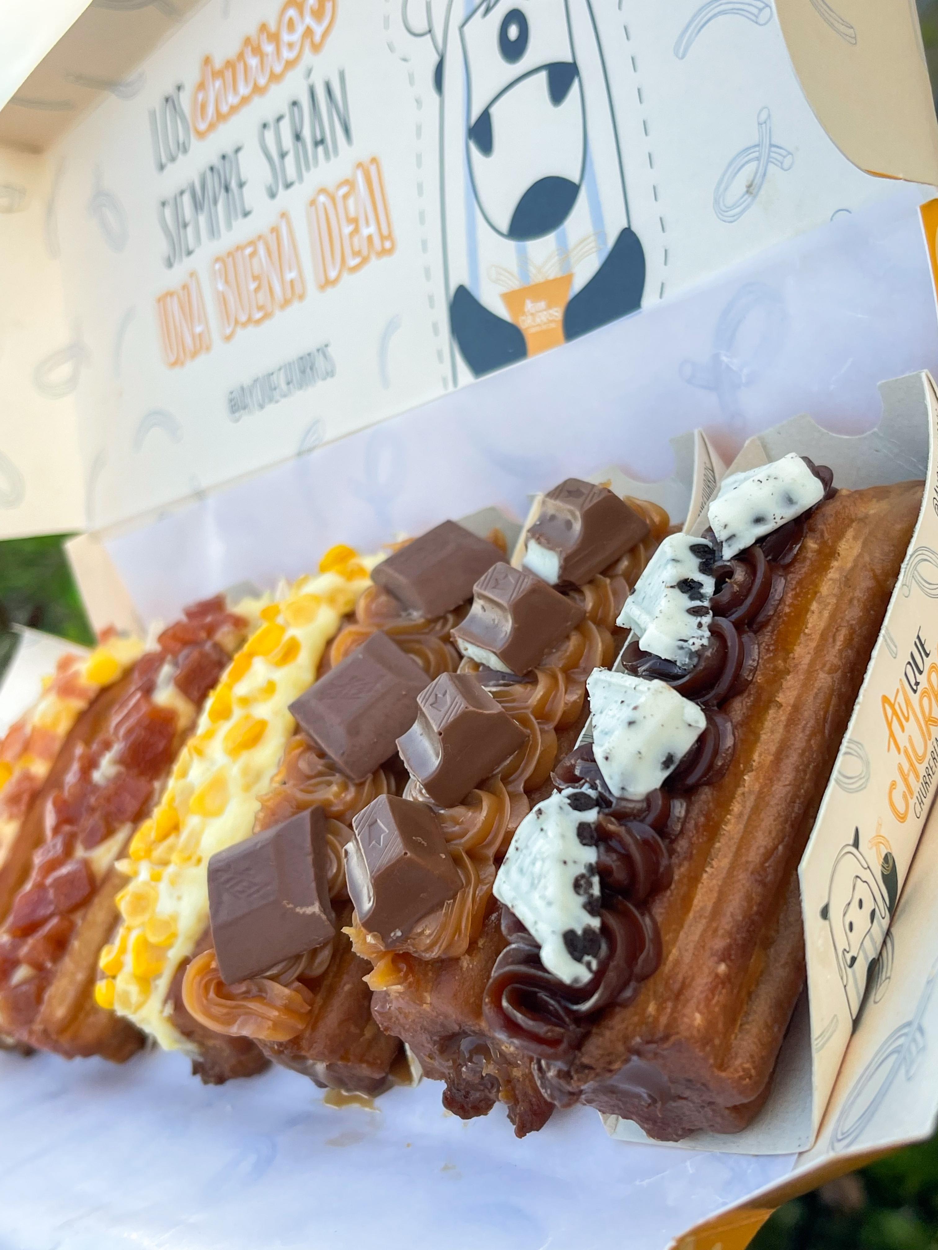 3 Churros rellenos con toppings dulces de tu elección, perfectos para calmar el antojo.