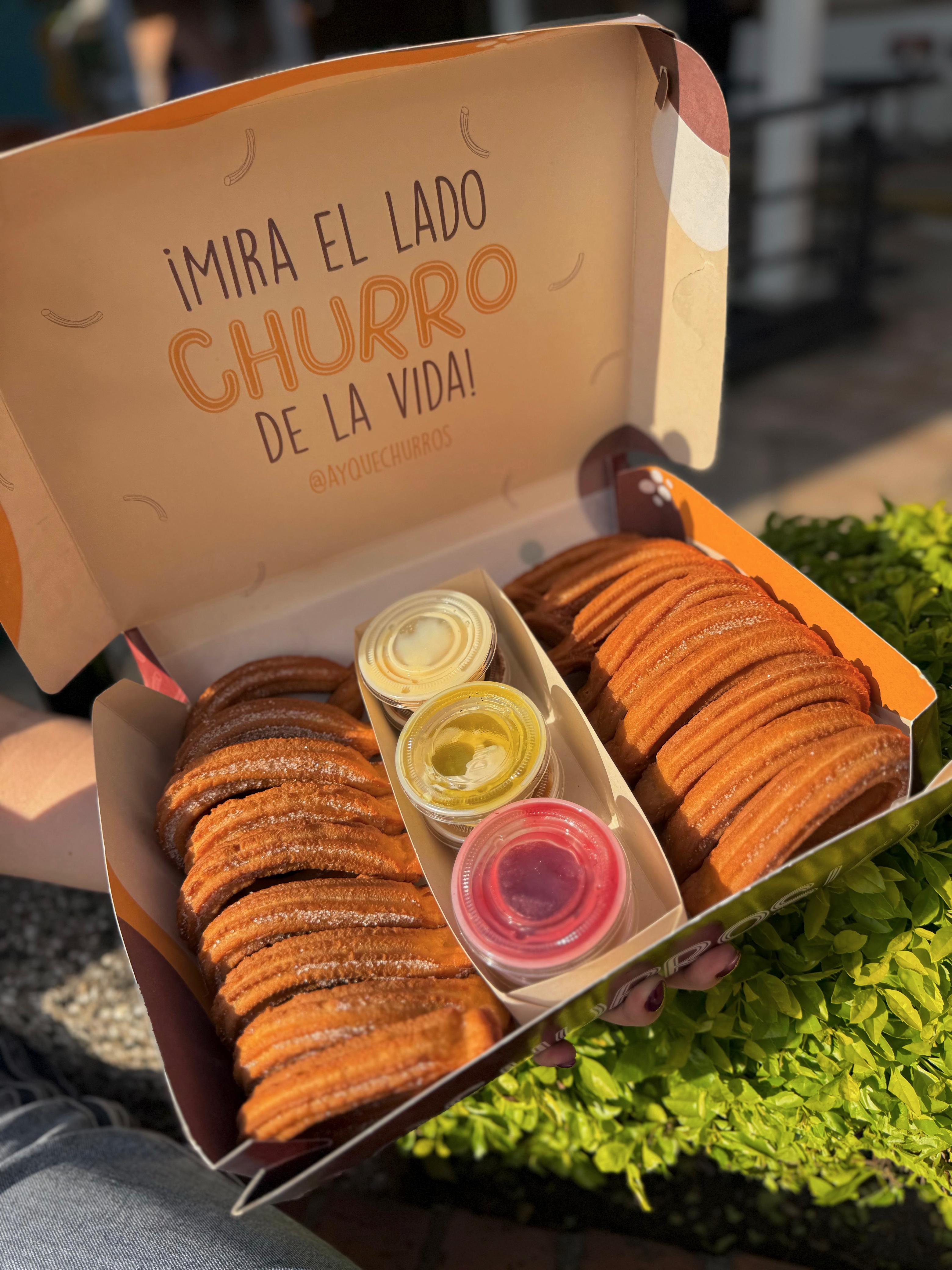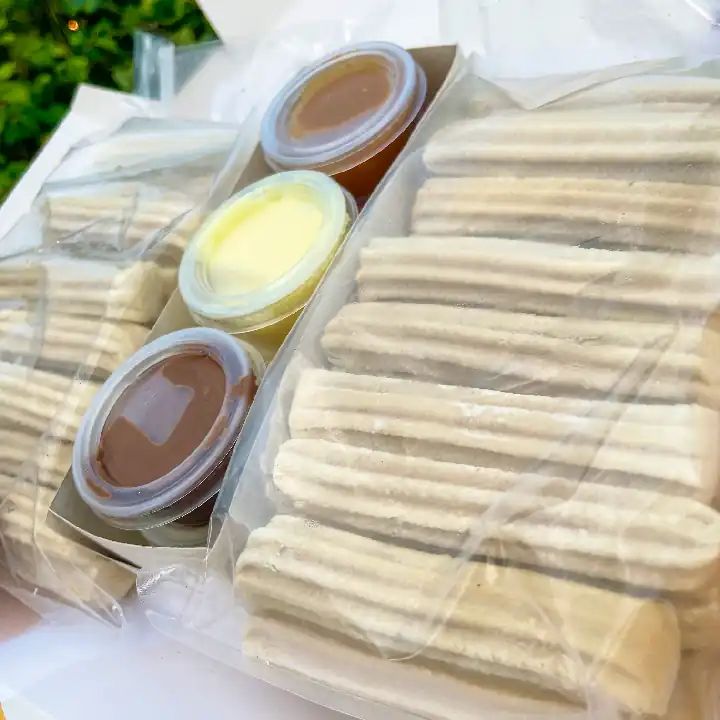 25 Churros listos para compartir y 25 churros congelados, viene con 6 salsas a tu elección.