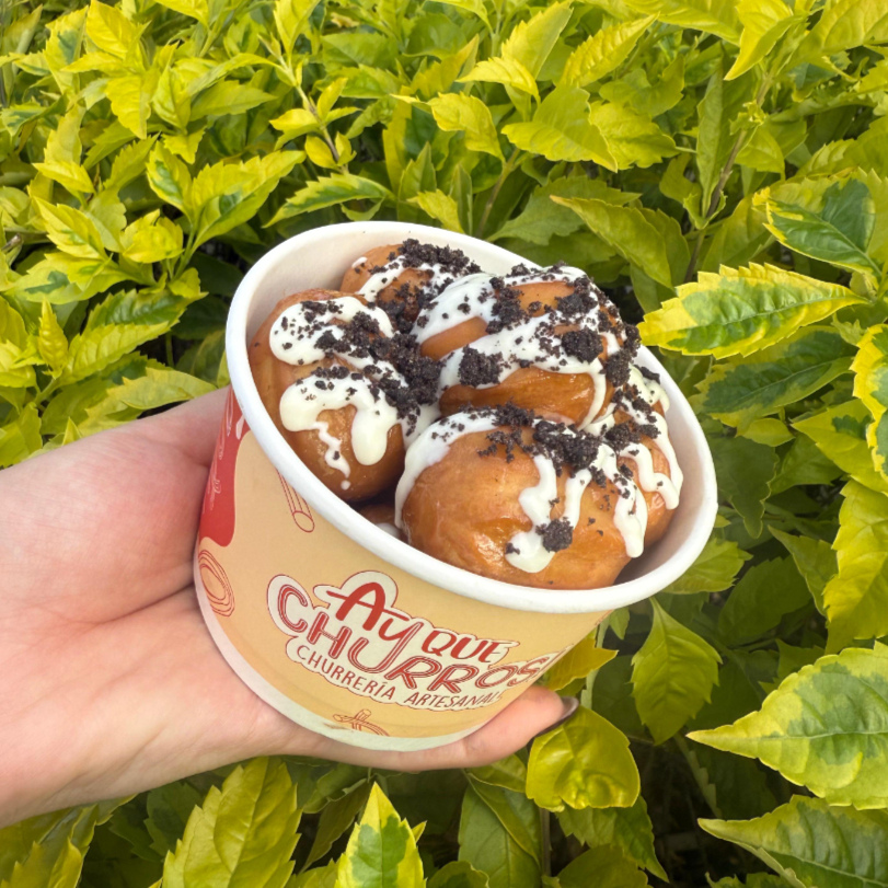 3 Churros rellenos con toppings dulces de tu elección, perfectos para calmar el antojo.