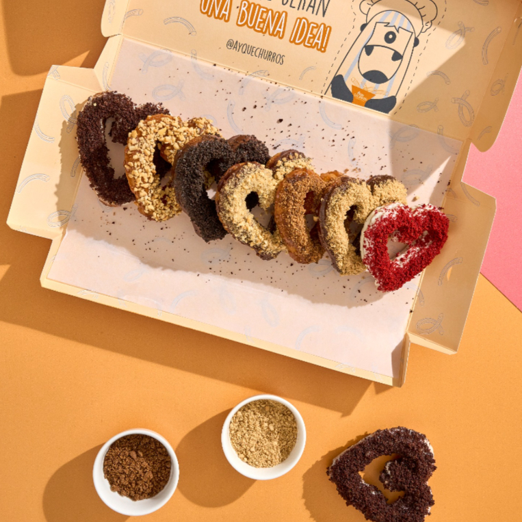 Caja de 6 churros rellenos con toppings de tu elección, ideal para endulzar el día de esa persona especial.