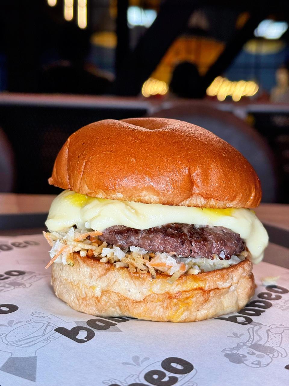 Pan brioche, carne angus , queso, coleslaw, ripio, salsa de tocineta