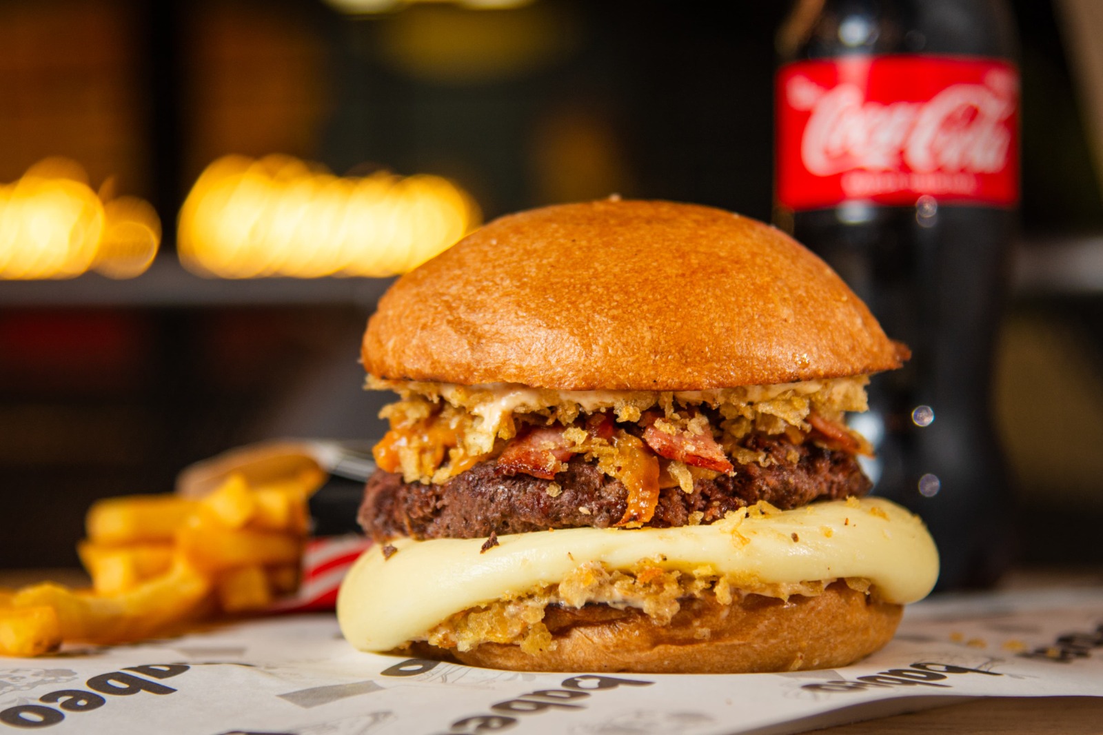 Pan brioche, carne angus , queso, coleslaw, ripio, salsa de tocineta , papas fritas, Coca-Cola 400 ml