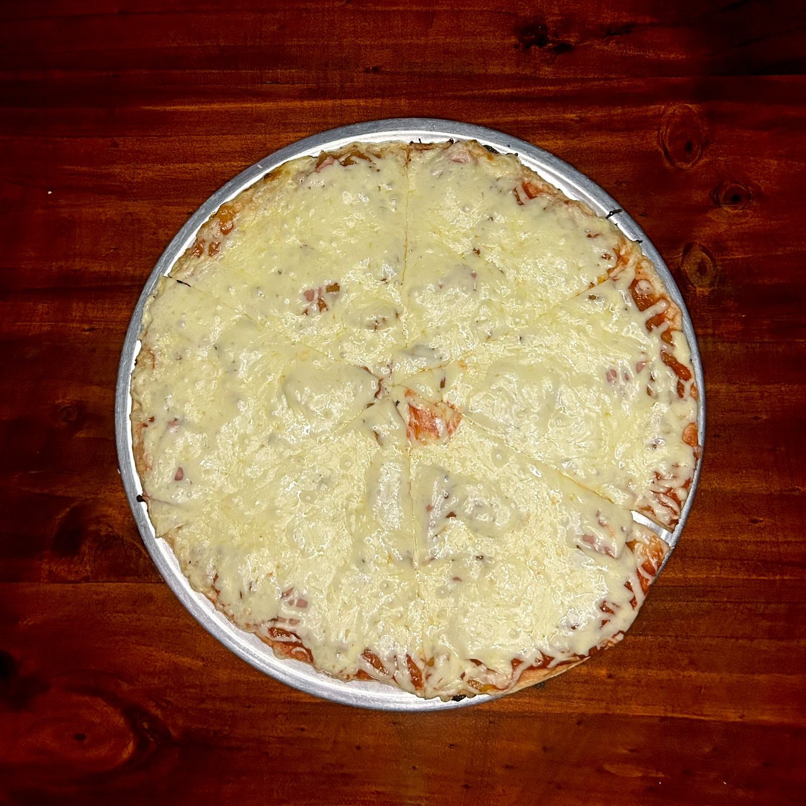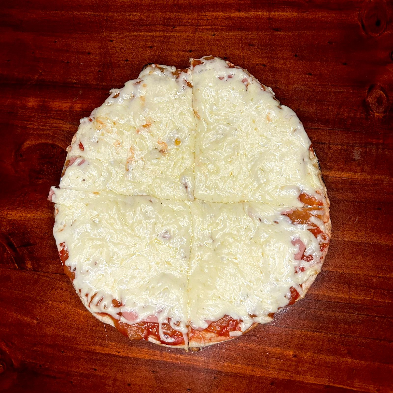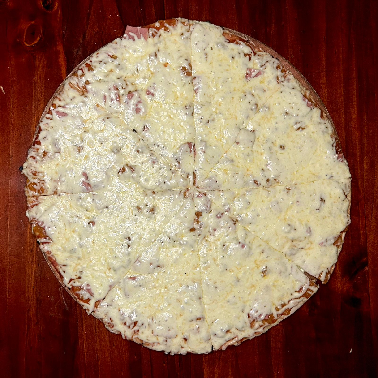 Pizza de 22 cm con una combinacion de pasta de tomate, abundante jamón y abundante queso sobre nuestra masa artesanal 4 porciones.