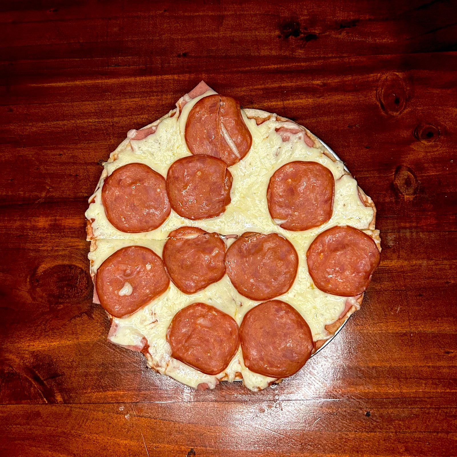 Pizza de 22 cm con una combinación de pasta de tomate, jamón, pepperoni y abundante queso sobre nuestra masa artesanal 4 porciones aprox.