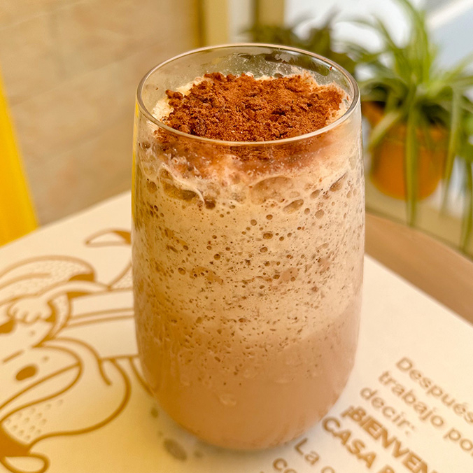 Malteada de café con banano, arequipe y chantilly, 14 oz.