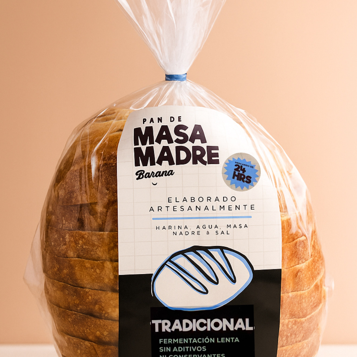 Pan artesanal de corteza crujiente y miga suave, elaborado con fermentación natural para un sabor auténtico y delicioso.