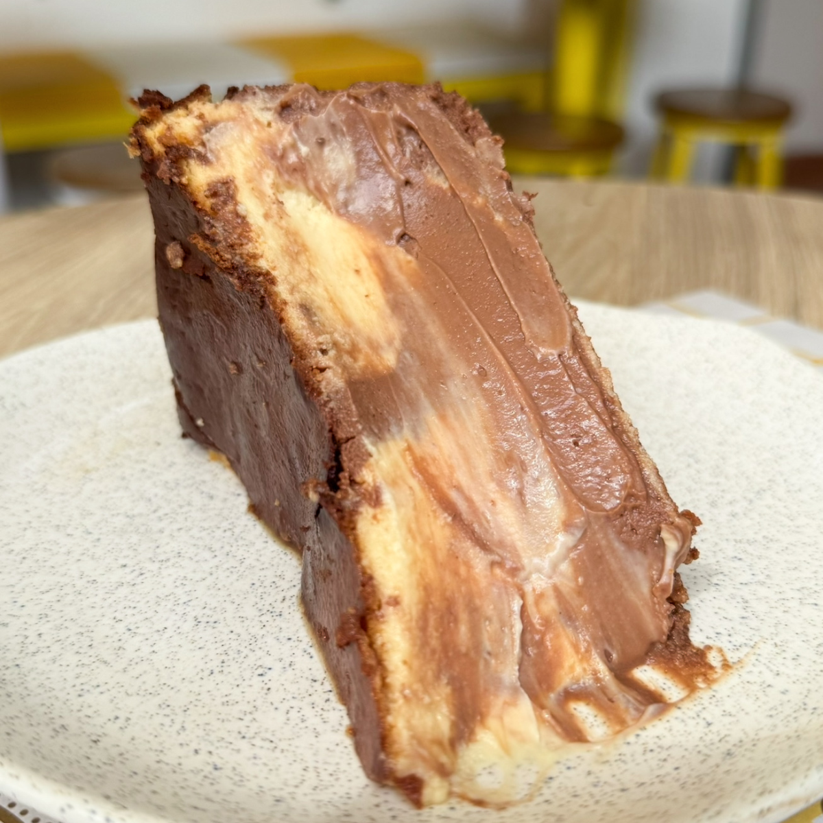 cheese cake cremoso de chocolate con una salsa a elegir, 1 porción.