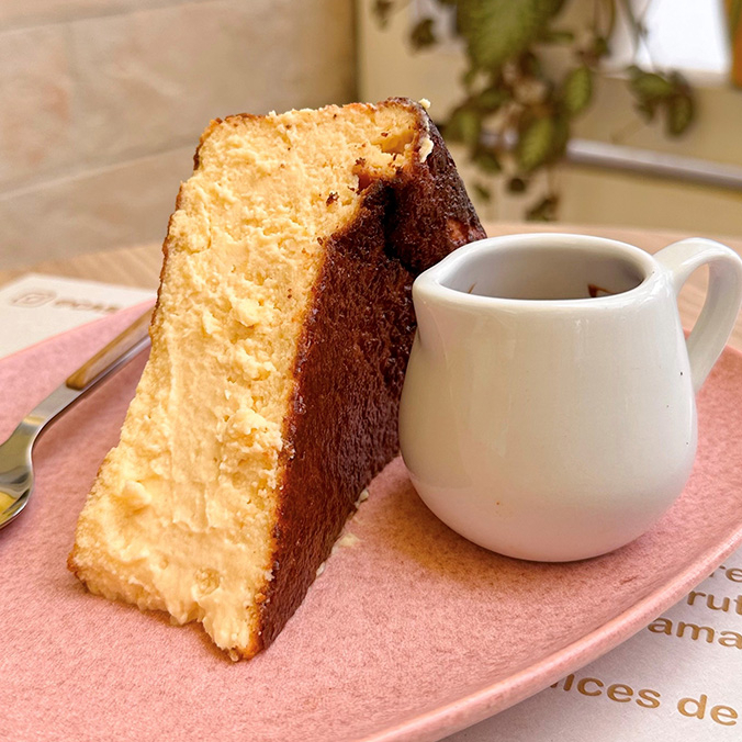 Nuestro delicioso Cheesecake Vasco con salsa a elección + 1 café americano para acompañarlo.