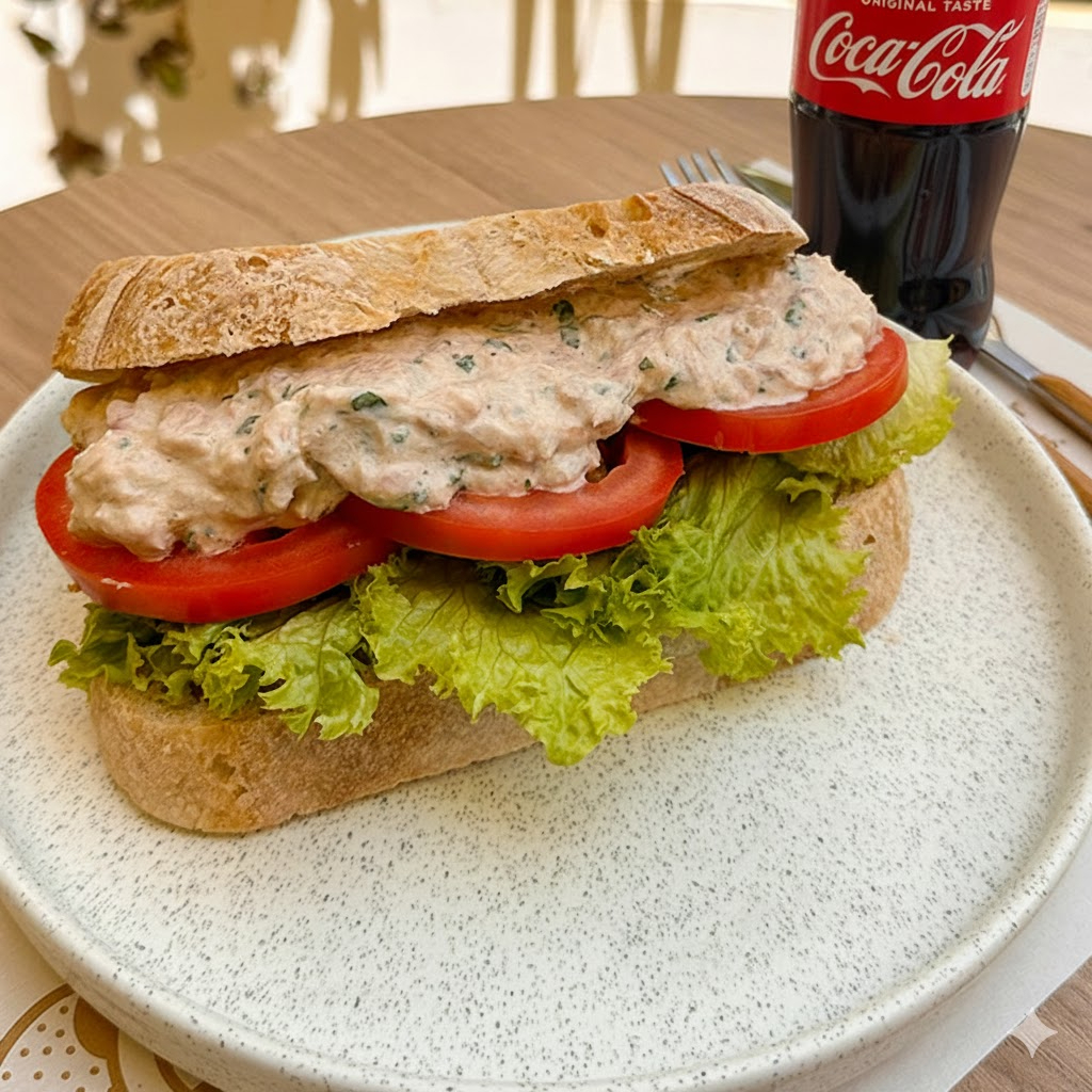 Sándwich con pan de masa madre crocante, crema de atún, tomate y lechuga acompañada de 1 Coca Cola sabor original o zero (sabor sujeto a disponibilidad).