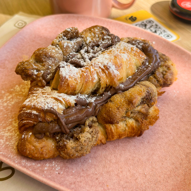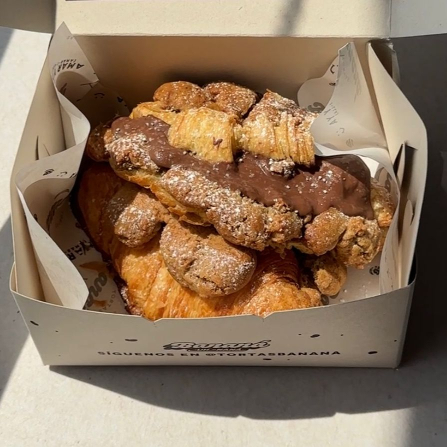 Croissant de mantequilla con relleno de galleta 100% fresca y Nutella.