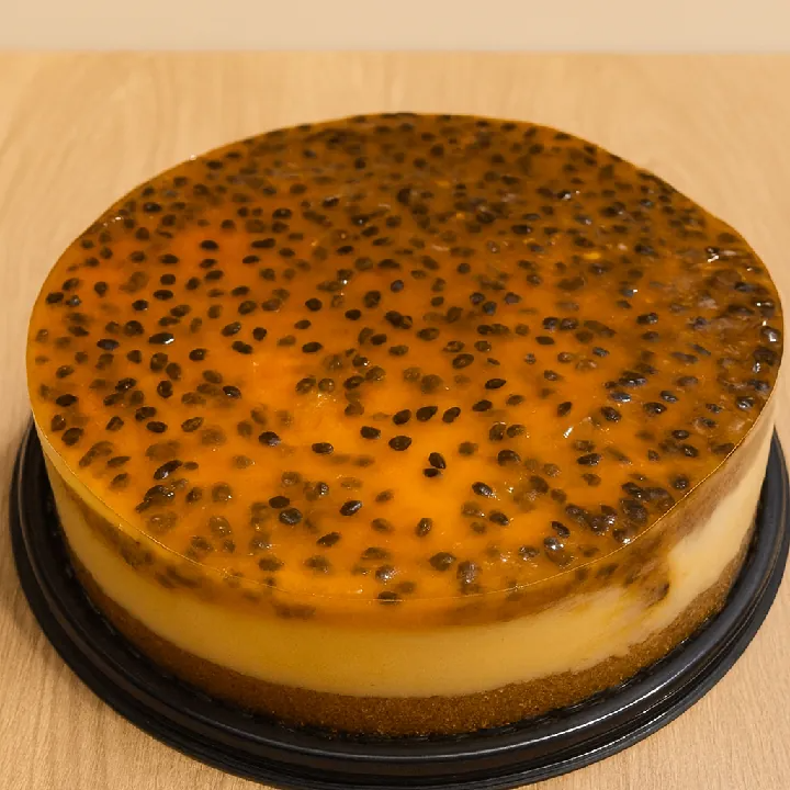 Mousse de maracuyá cremoso con torta de banano esponjosa, 1 ud (viene con salsa de vainilla).