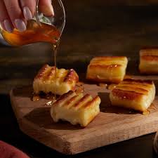 Queso asado con miel y tajin.