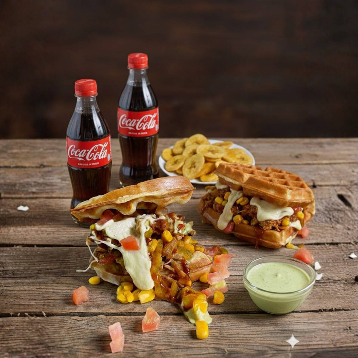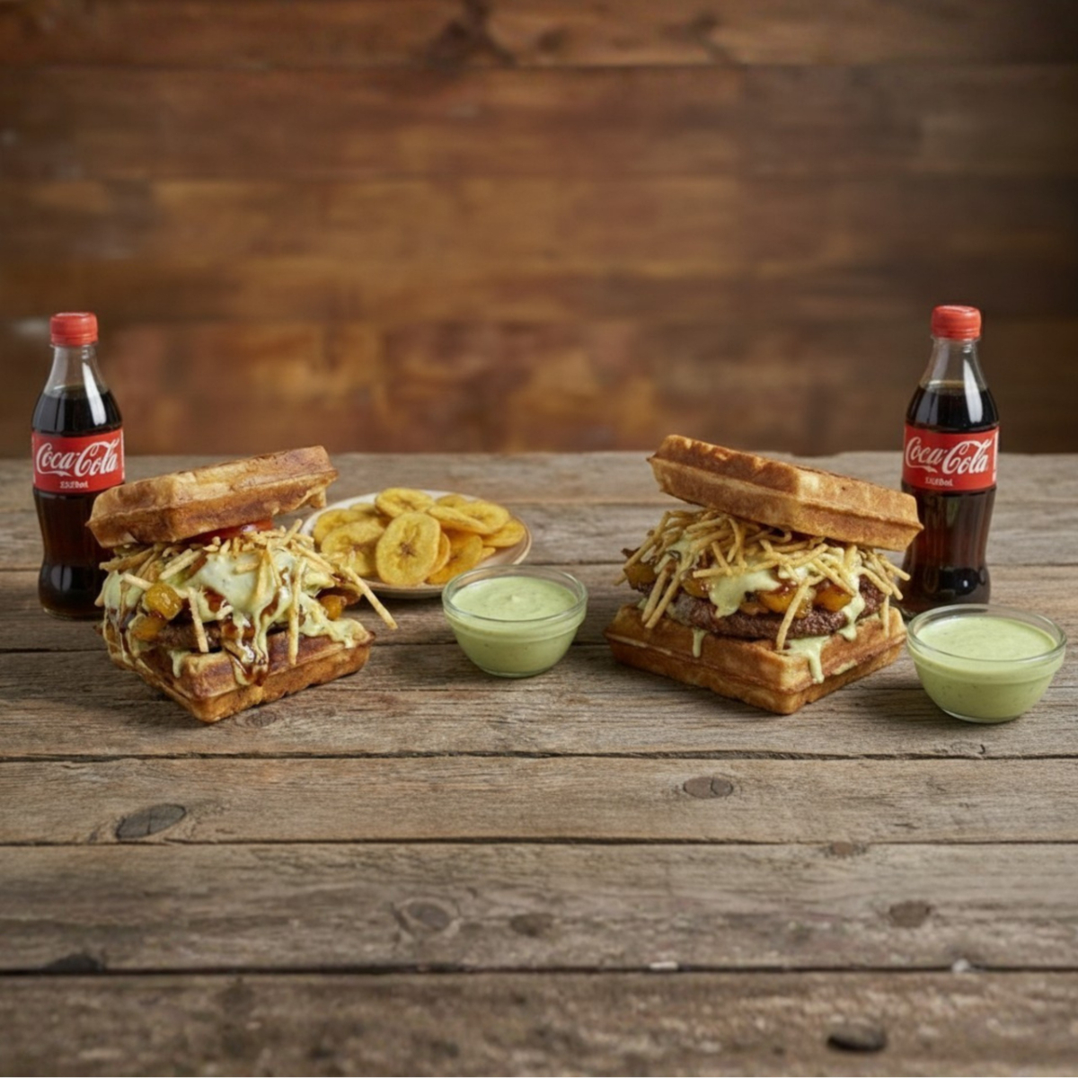 Platanitos*2 + Coca Cola 400 ml*2 + Waffle Burger La Santa Personal*2