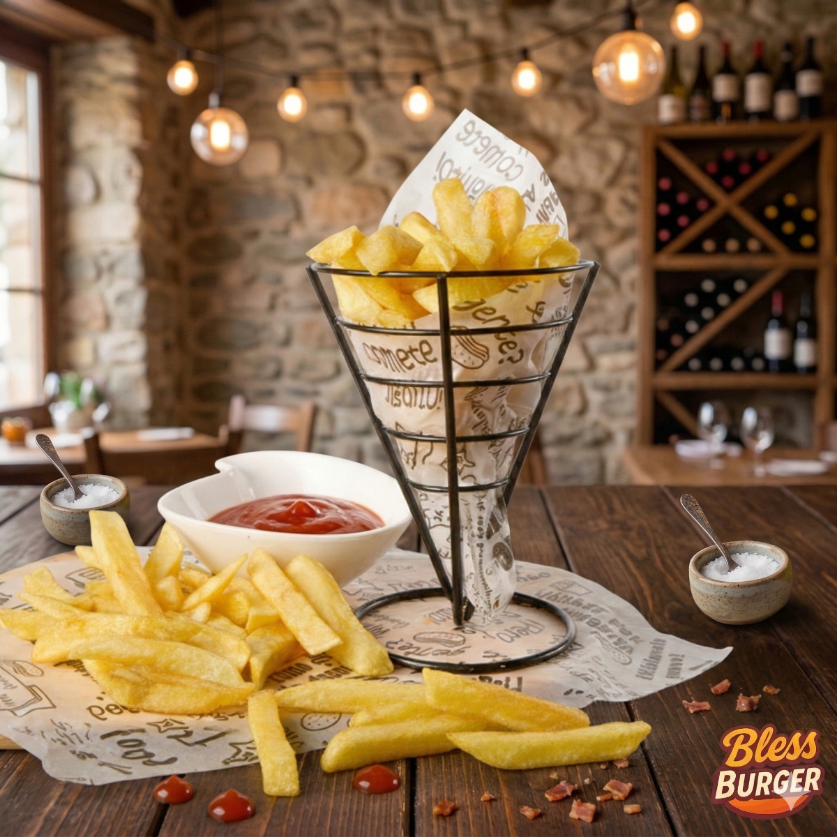 200 Grs de crocantes papas a la francesa con la deliciosa salsa Blessed.
