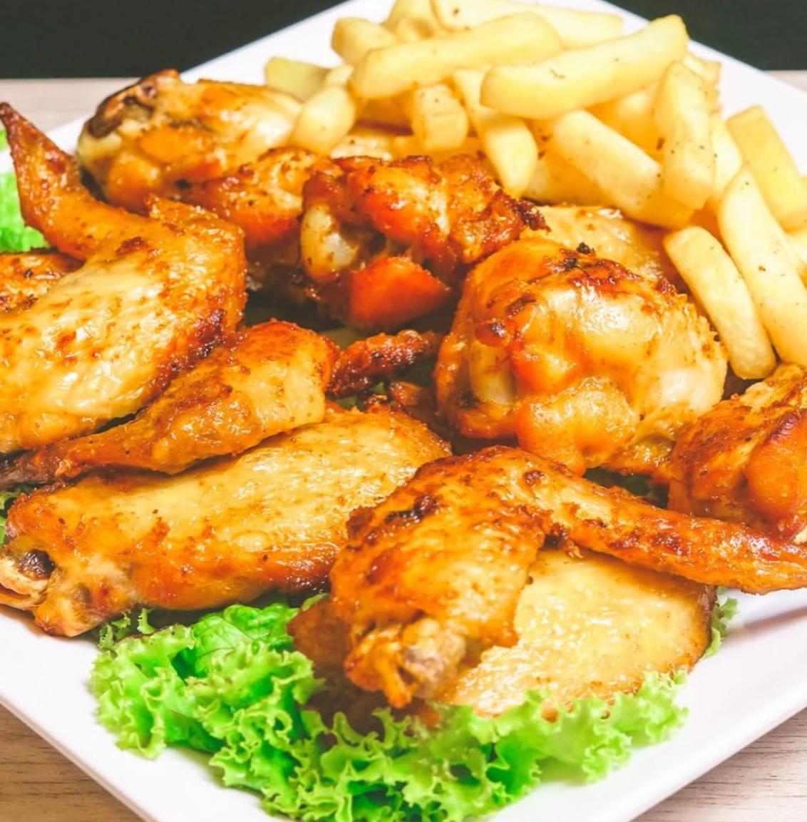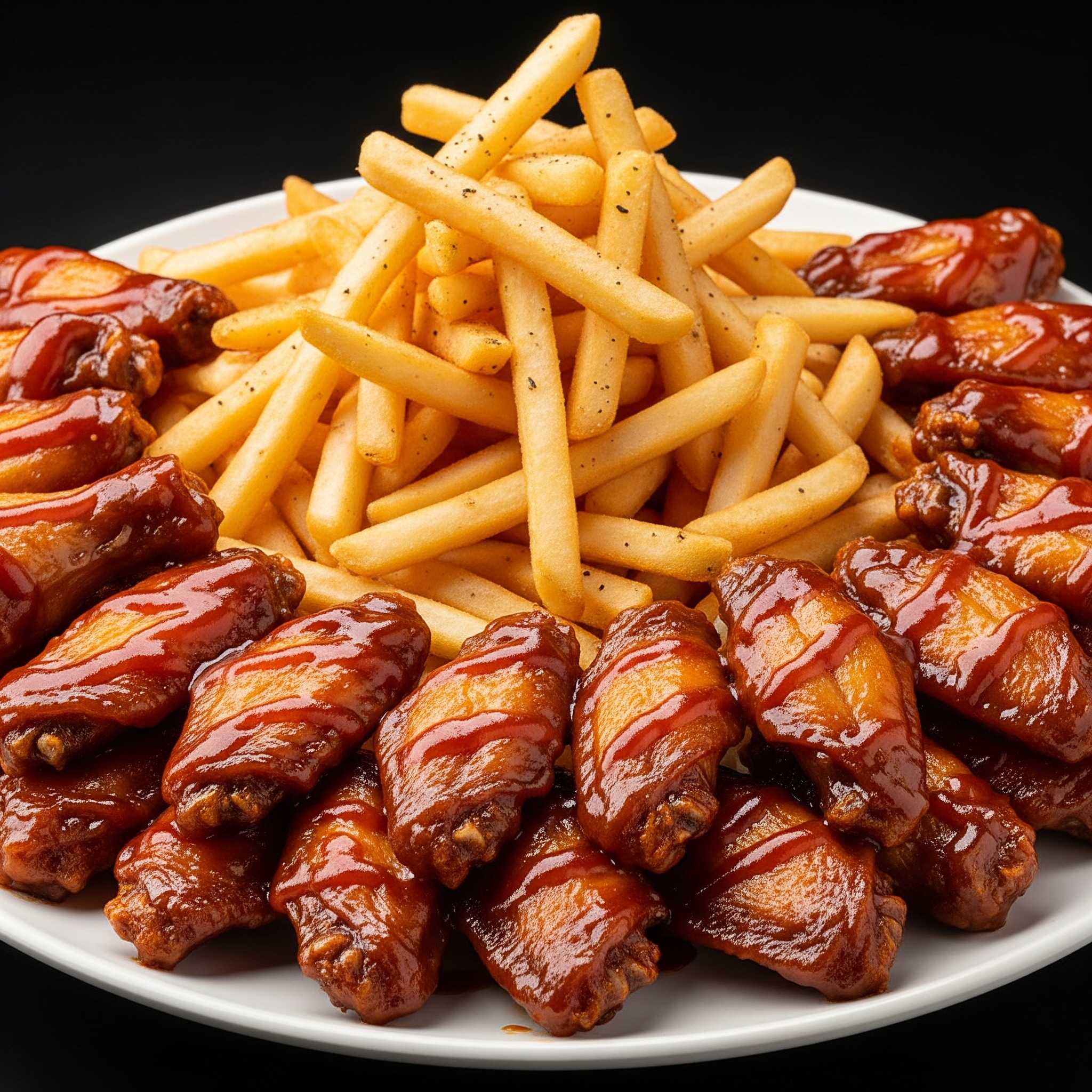 6 Alitas de tu elección con 120 g papas a la francesa y bebida 250 ml.