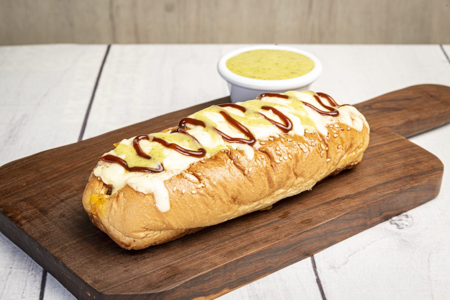 Papa francesa 110 g, 100 g salchicha, 2 quesos mozzarella, ripio y salsas.
