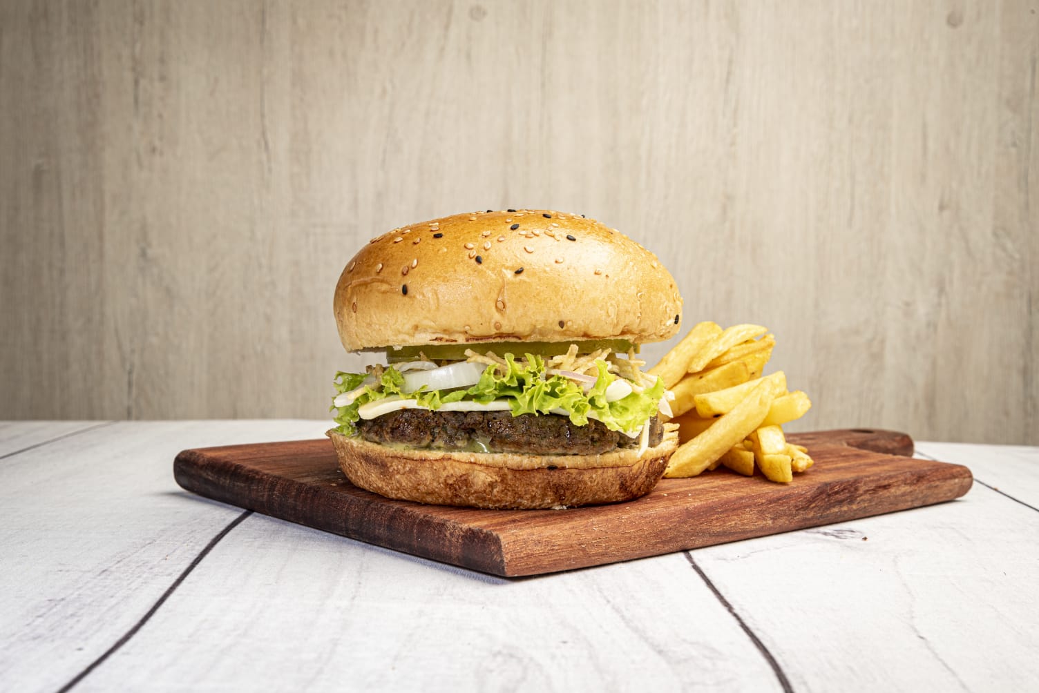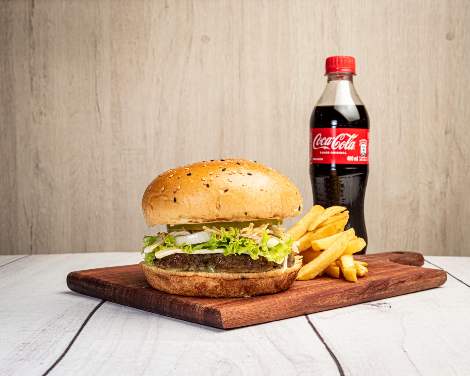 Hamburguesa Tradicional con Papas y Bebida 250ml