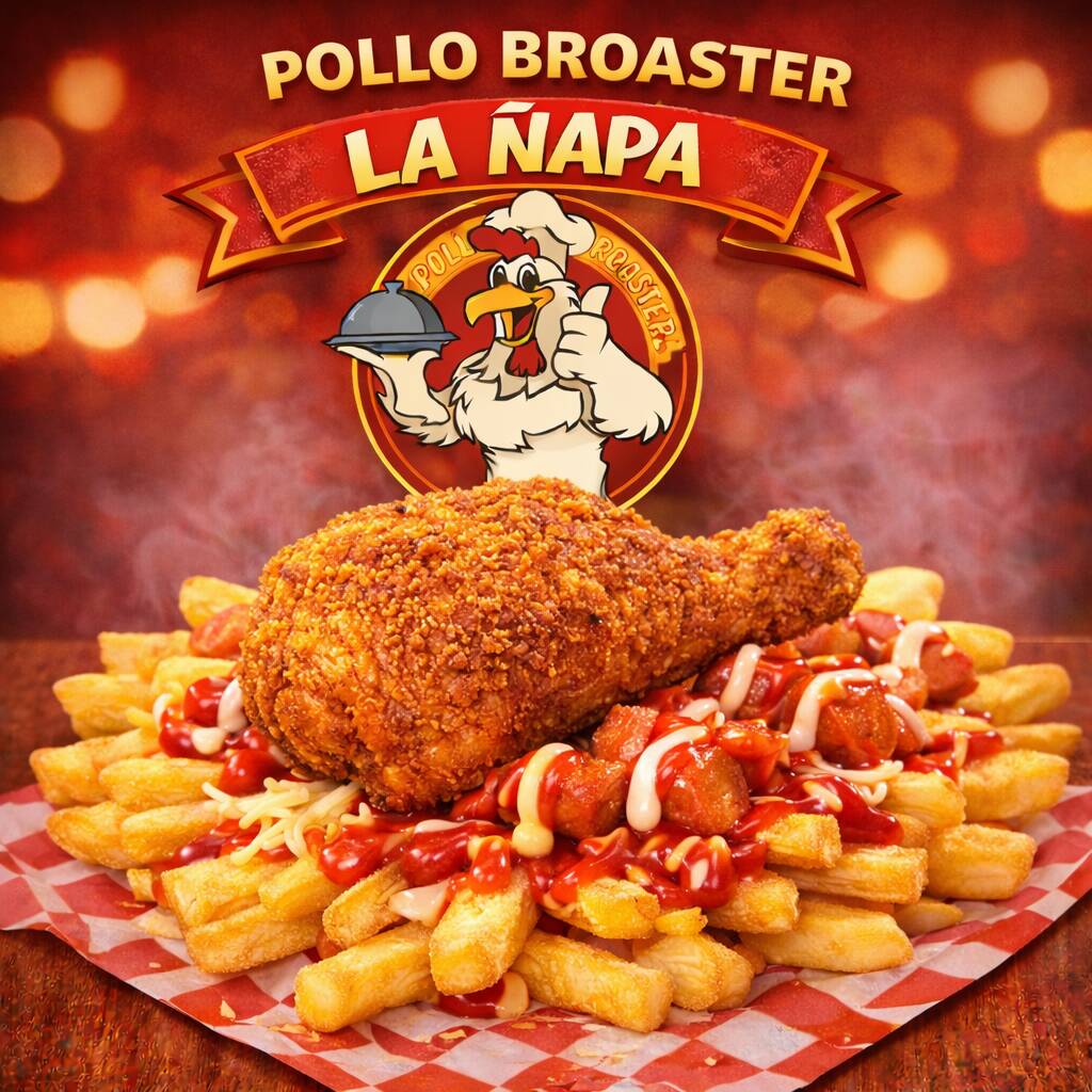 pollo apanado, salchicha, papa a la francesa o amarilla (disponibilidad de producto) y salsa verde, roja, piña, rosada, bbq