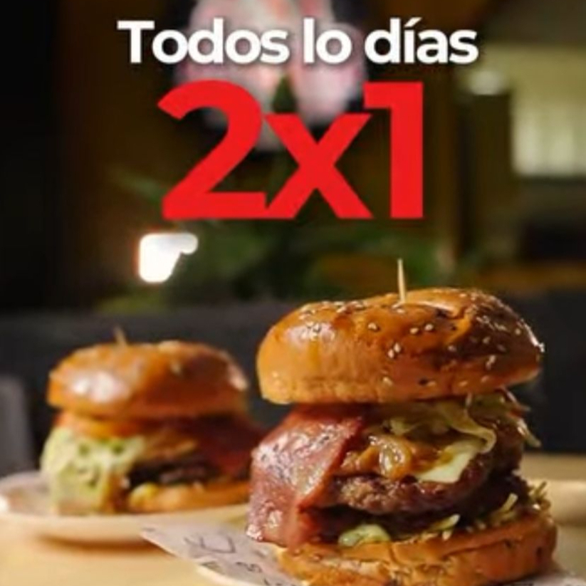 2 hamburguesas con Pan Brioche, res, tocineta, cebolla grille, queso, ripio, lechuga, tomate.