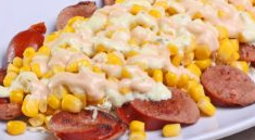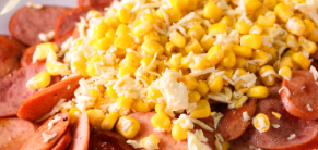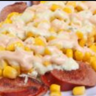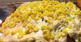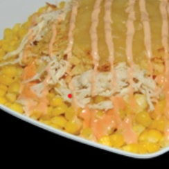 Maíz, filete de pollo, queso fundido y mantequilla.