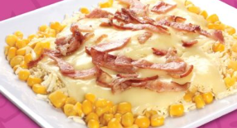 Maíz, ranchera, tocineta, queso fundido y mantequilla.