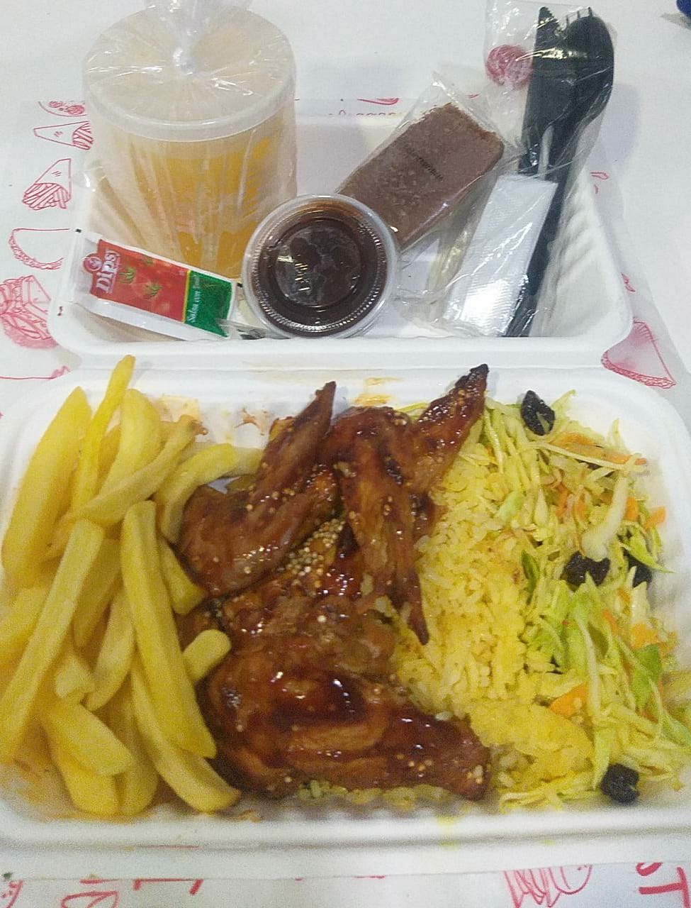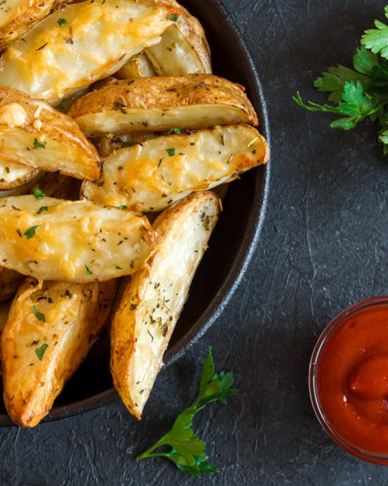 Papa criolla o francesa (según disponibilidad), salsas BBQ sweet, sweet chilli o sriracha hot chilli BBQ.