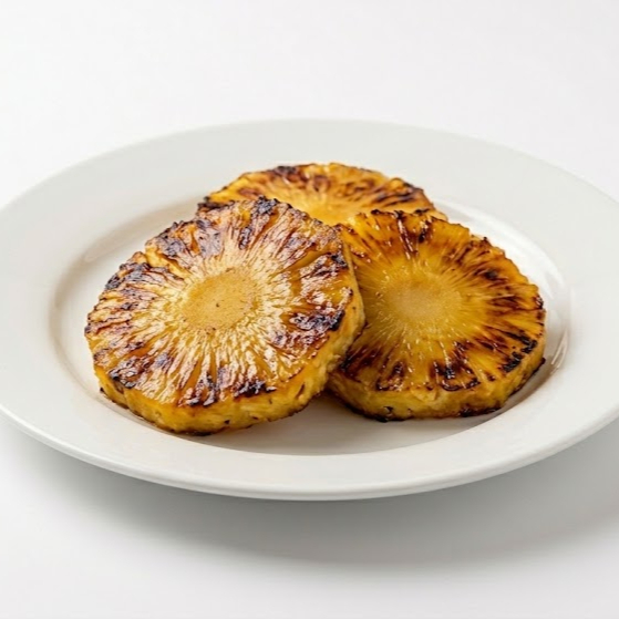 Pan artesanal, carne de res angus, queso, piña asada, lechuga, tocineta, cebolla natural, tomate y salsas de la casa más porción papas.