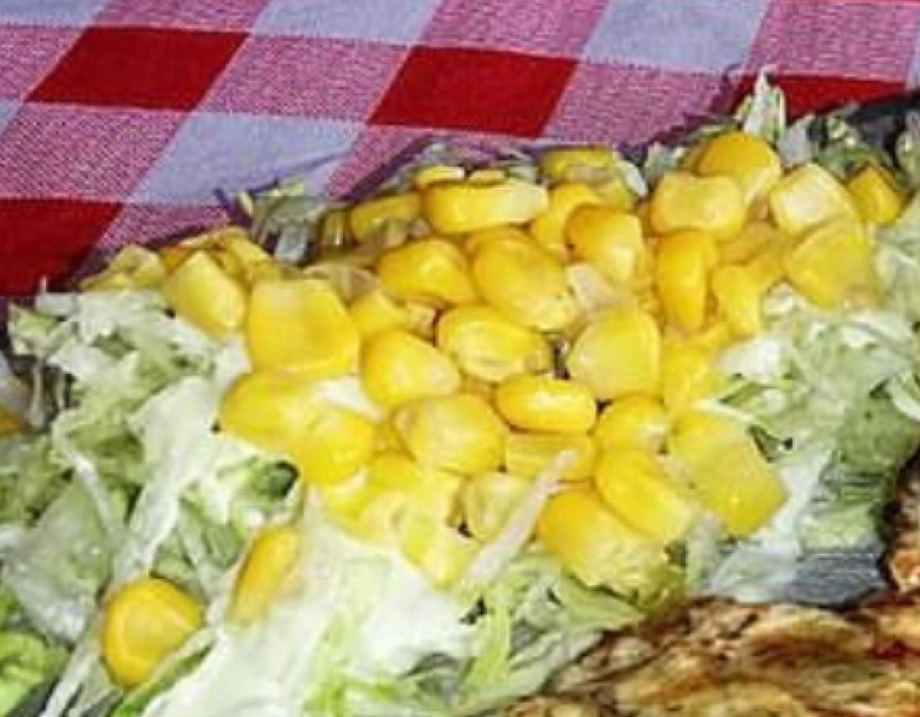 lechuga, maiz, salsa de la casa