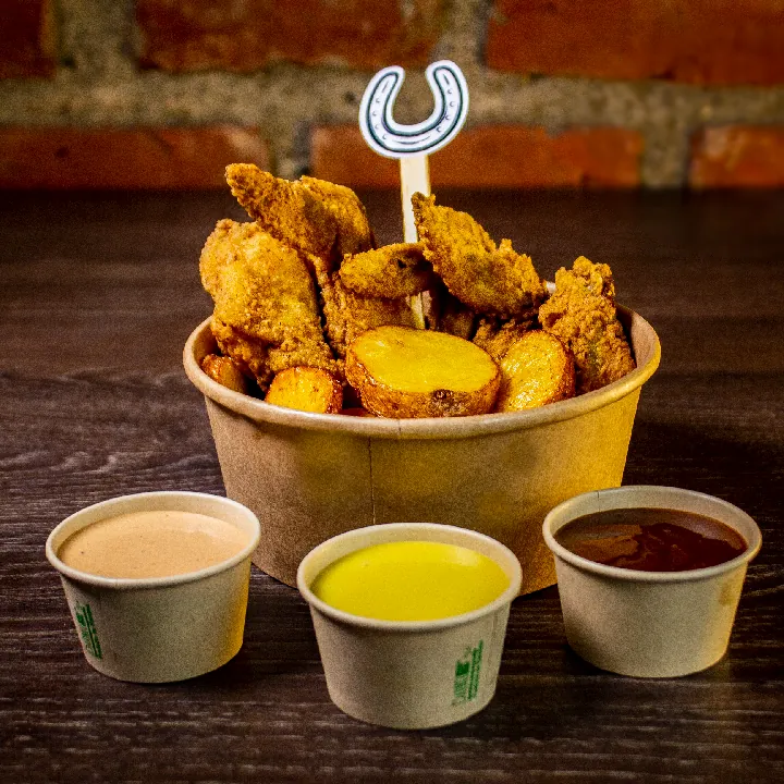 Alas acompañadas con papa criolla.