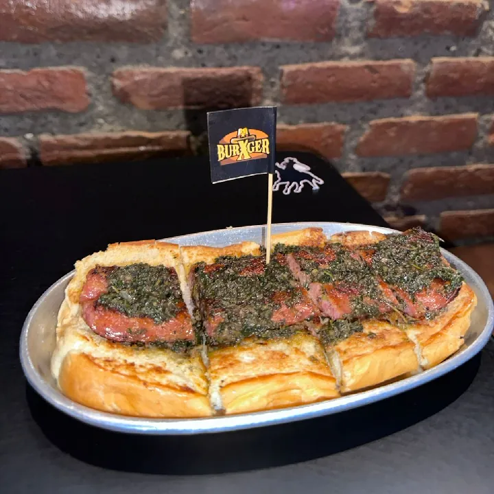 Chorizo xl, pan brioche con chimichurri.