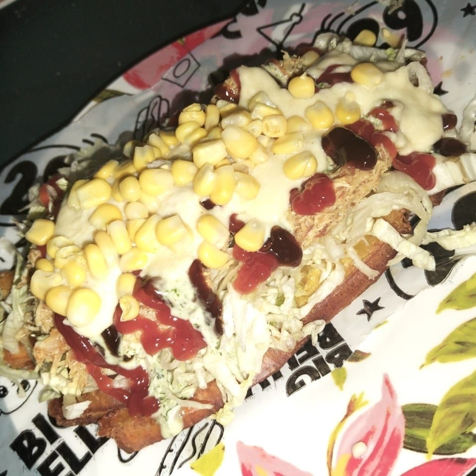 Papa Amarilla Ripio salchicha salsas queso pollo chorizo tocineta y maícitos X2
