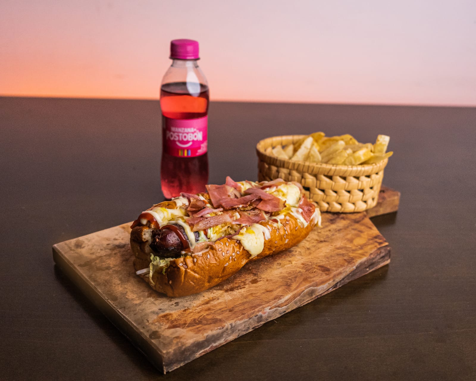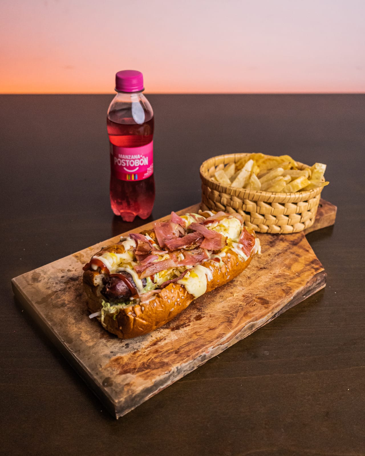 150 g de papas a la francesa doradas al punto perfecto, con 100 g de salchicha jugosa, lechuga fresca, tocineta crocante y queso gratinado fundido. Todo bañado con nuestras irresistibles salsas: tomate, ajo, verde, piña y la especial de la casa.