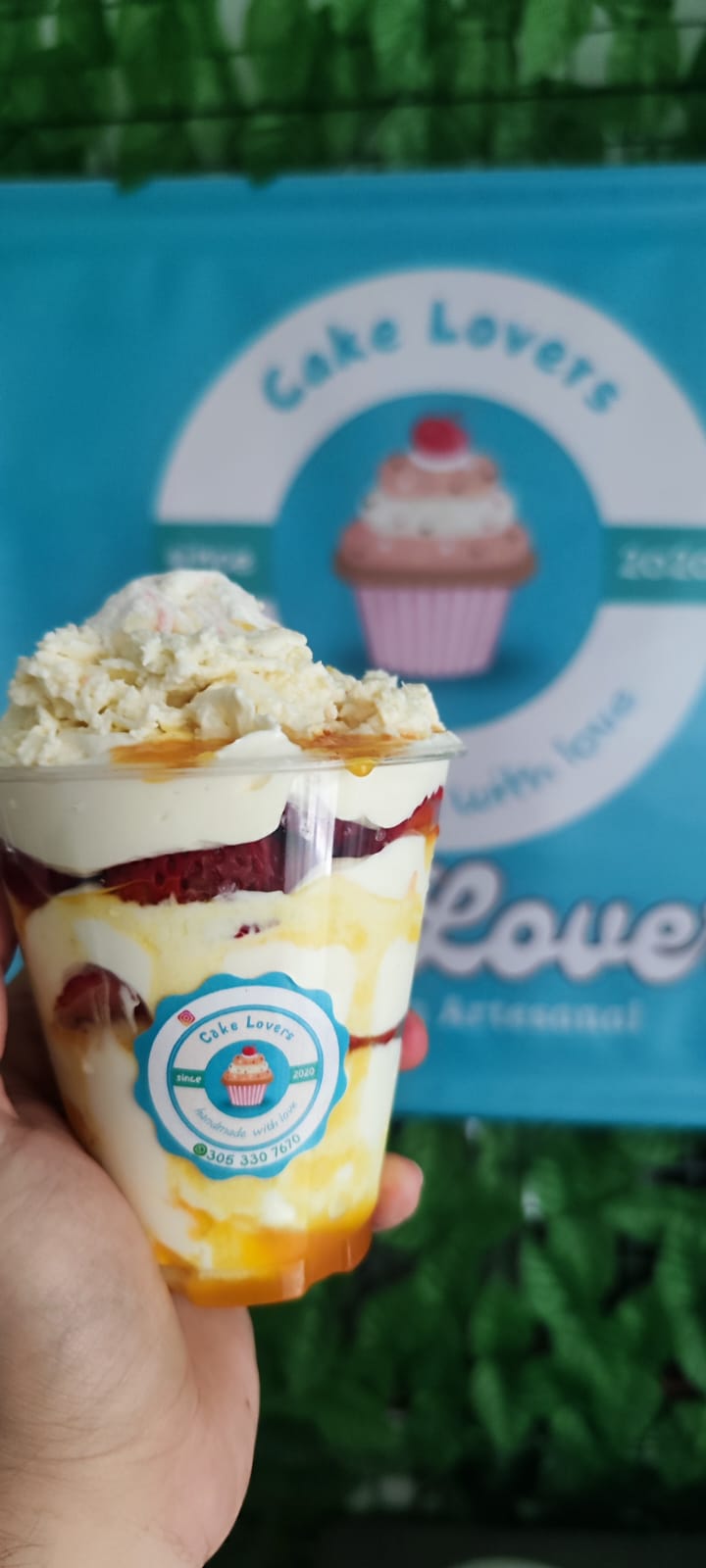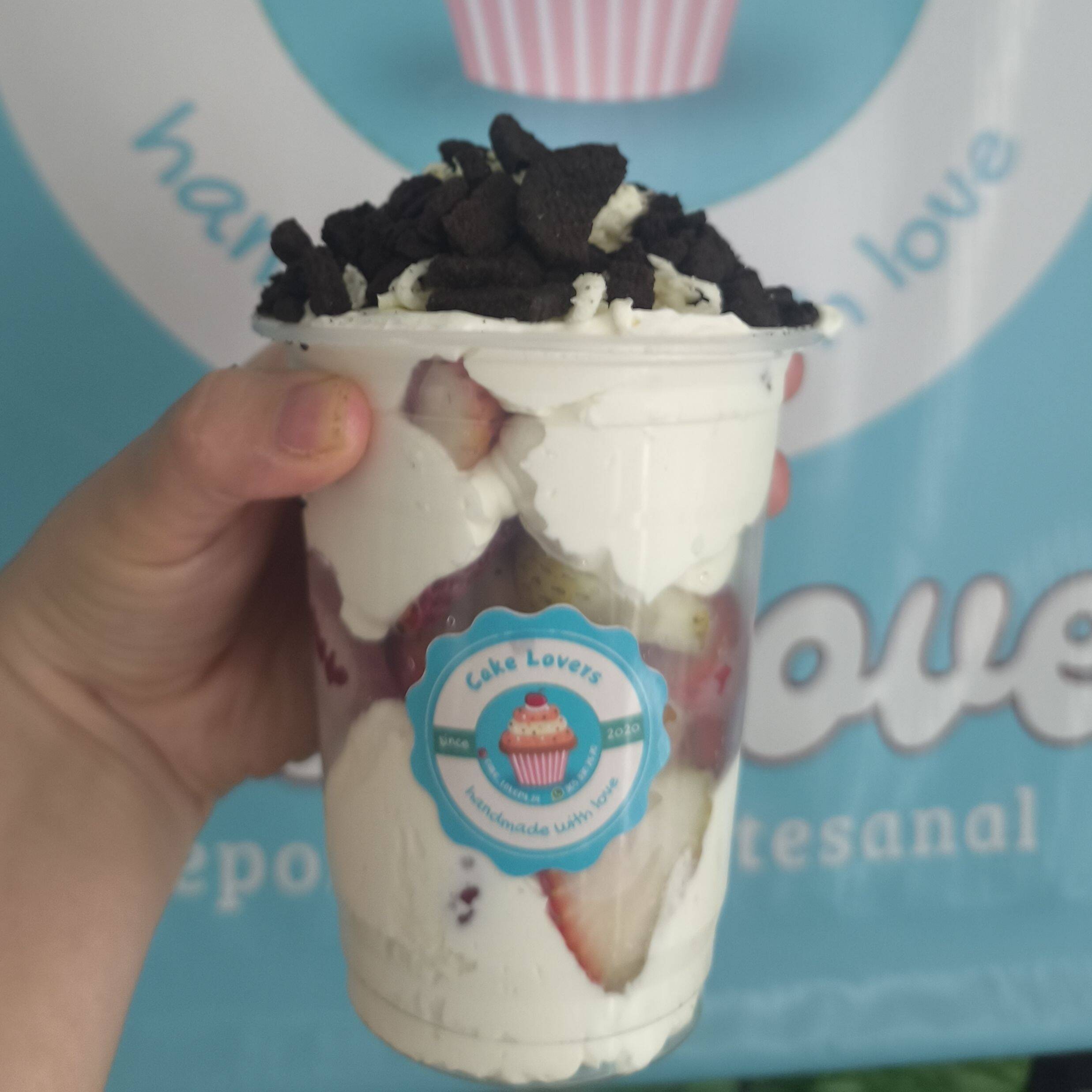 Vaso de 14oz incluyen, crema artesanal con sabor a Cafe, arequipe, fresas