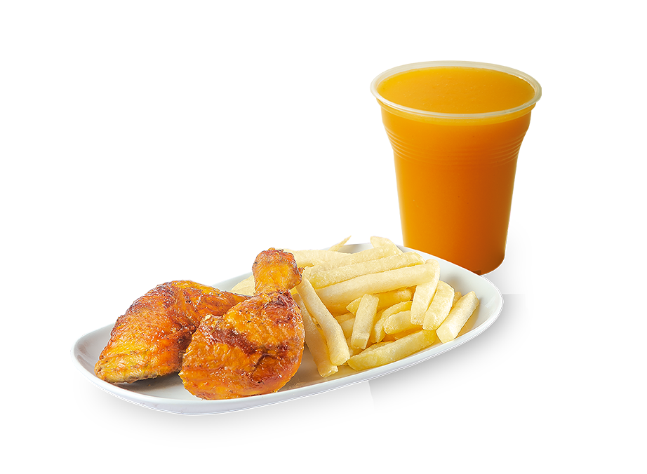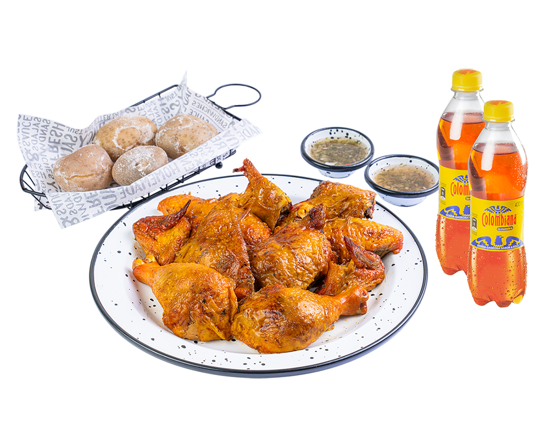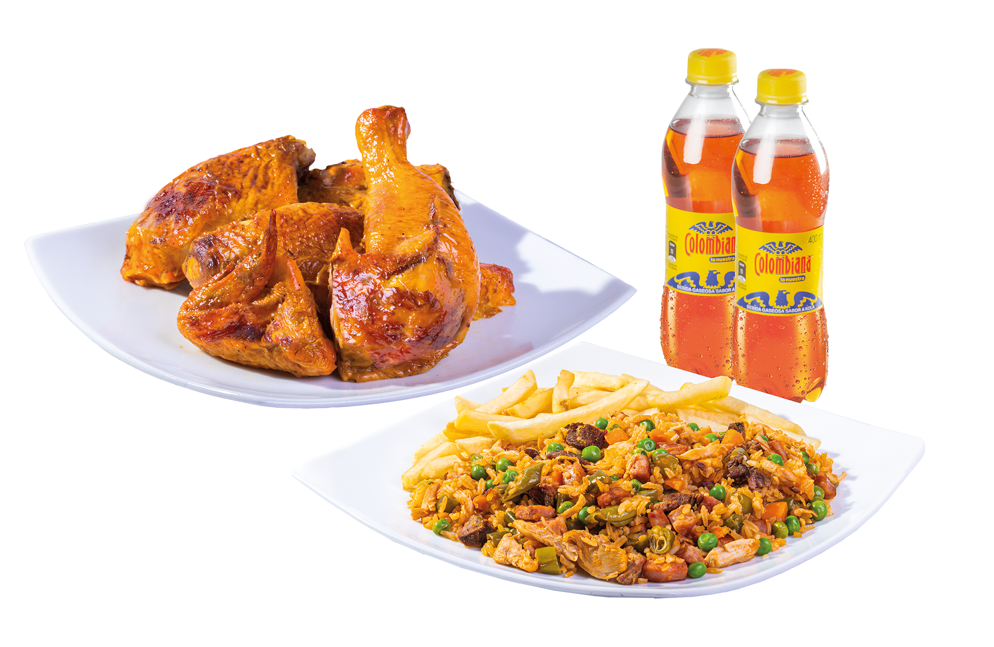 Medio Pollo Asado + Arroz con Pollo Mediano + Porción de papa Francesa + 2 bebidas personales.