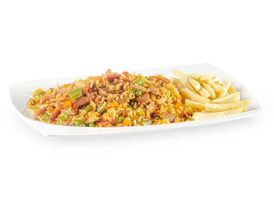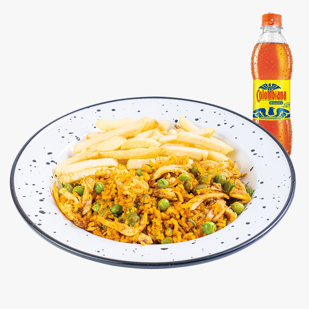 Arroz con Pollo Mediano + 1 Porcion de Papa Francesa + 1 Bebida Personal