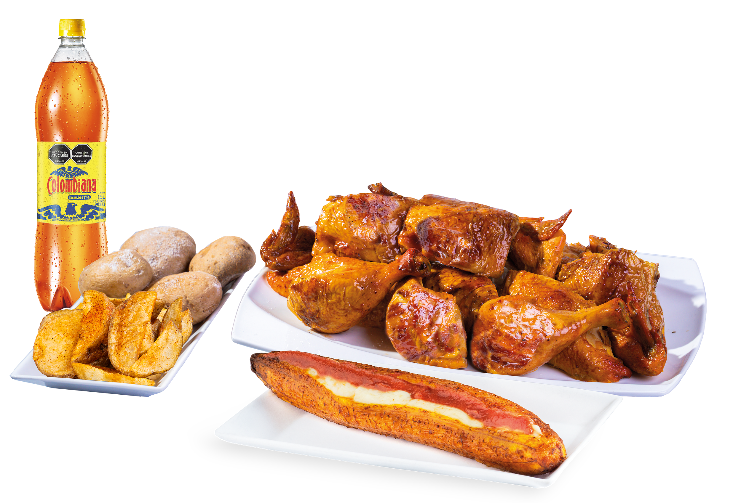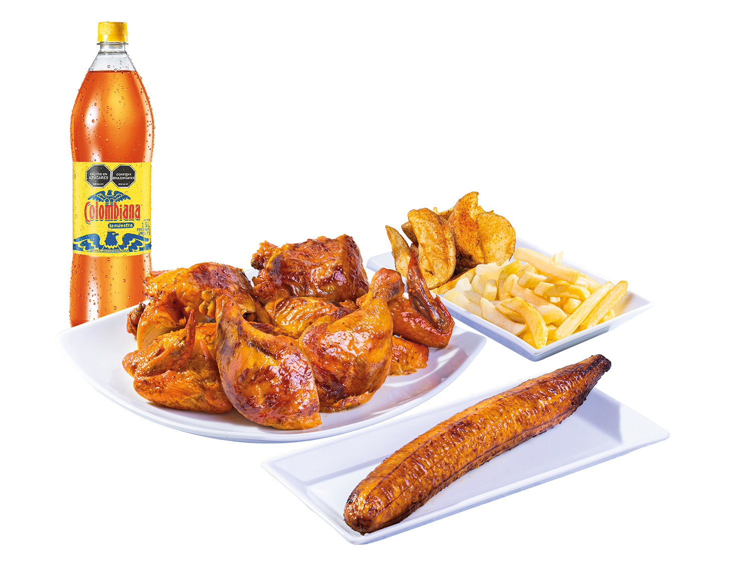 Pollo y Medio Asado + Papa Salada + Francesa + Plátano con Quedo y Bocadillo + 1 bebida 1,5 lts.